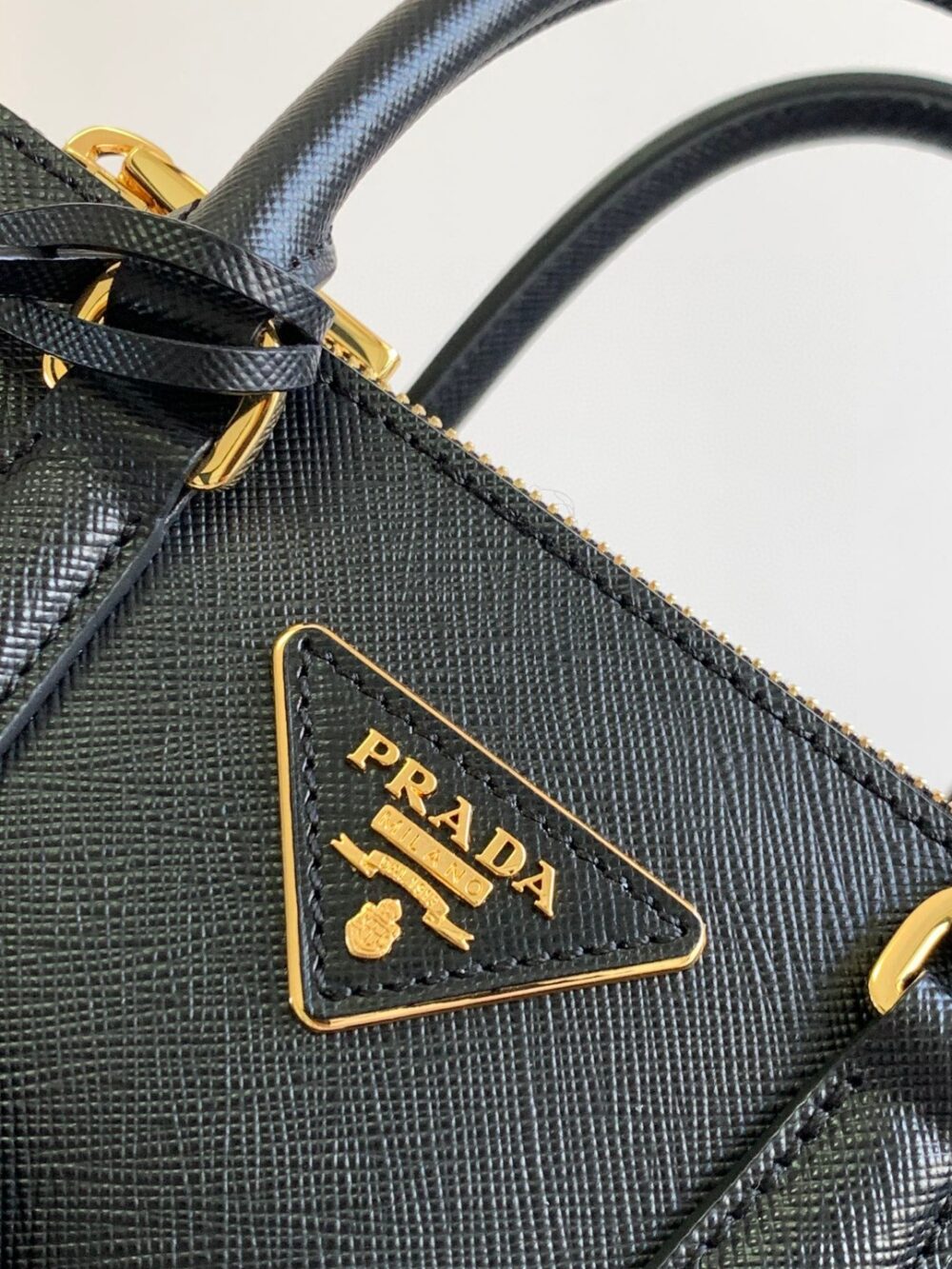 Galleria Saffiano Mini Bag composed of 83 pieces, is an authentic fusion between industrial precision and the refined accuracy of craftsmanship that can only be performed by hand. The design is clean and elegant yet innately pragmatic, an aesthetic language blending form and function that combines history and modernity. Originating the definition of “timeless”, the Galleria bag has become a hallmark of Prada’s identity in the twenty-first century. The accessory, presented in the mini version, is made of iconic Saffiano that was patented by the founder of the brand and features a crosshatch texture and finish.