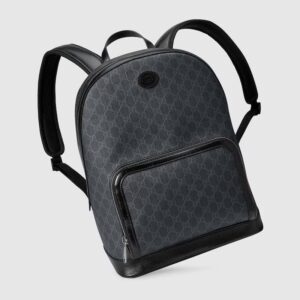 In keeping with the timeless feel that permeates the luggage selection for Gucci Love Parade, this backpack appears in elegant black GG Supreme. The canvas has come to the front of each collection decade after decade to become a hallmark of the House. An Interlocking G leather tag completes the design.