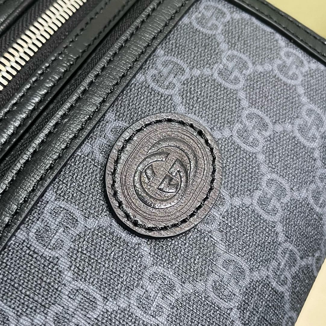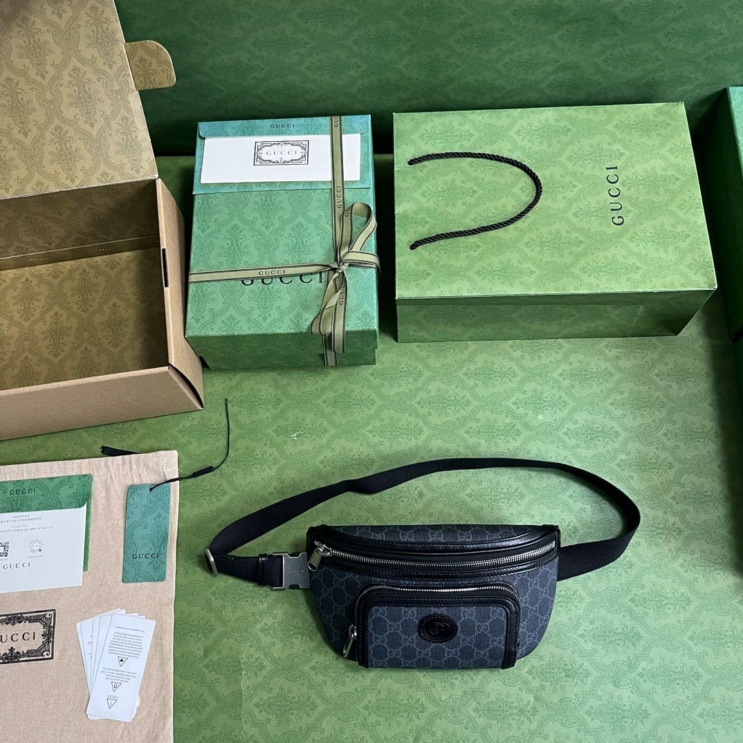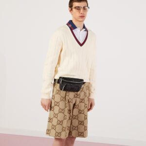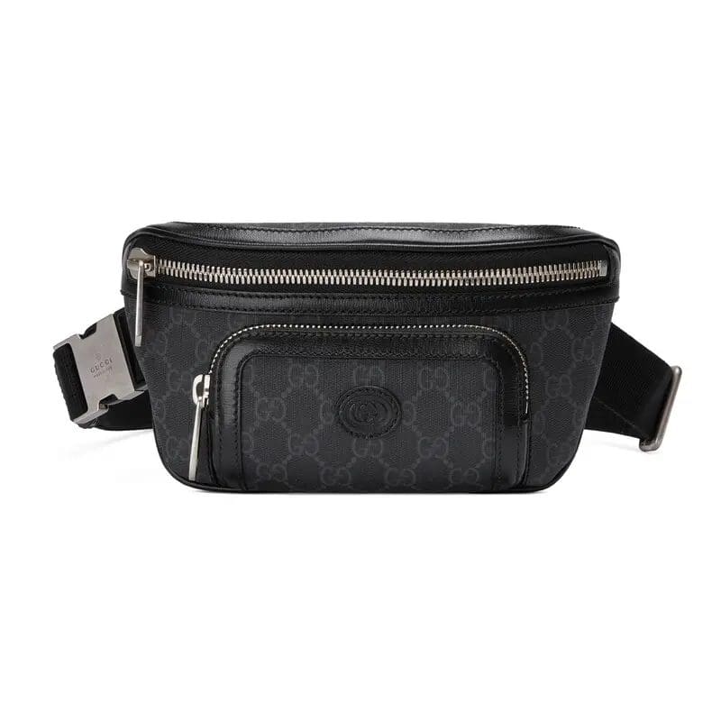 Colours animate the Gucci Aria collection, coming together to weave materials, textures and shapes into a story. Adding a contemporary edge to the archival fabric, this belt bag is crafted from GG Supreme canvas in black. The accessory is completed by the Interlocking G—appearing as a leather tag.