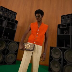 Vintage elements are paired with archival details as an ode to the glamour that permeated the Gucci Love Parade fashion show. This shoulder bag pairs a delicate chain strap with GG Supreme canvas to infuse the accessory with a timeless feel. Reintroduced in honour of the collection, the rounded silhouette is completed by a historical, rounded iteration of Guccio Gucci’s monogram.