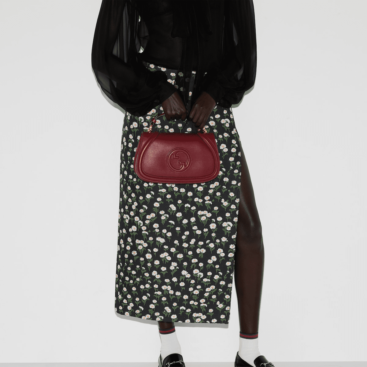 The new Gucci Blondie bag, whose distinctive logo first appeared in the House’s collections in the early 1970s, weaves together past and present in a fusion of nostalgia and modernity. This small top handle bag with a detachable and adjustable leather shoulder strap is crafted from Gucci Rosso Ancora red smooth leather.