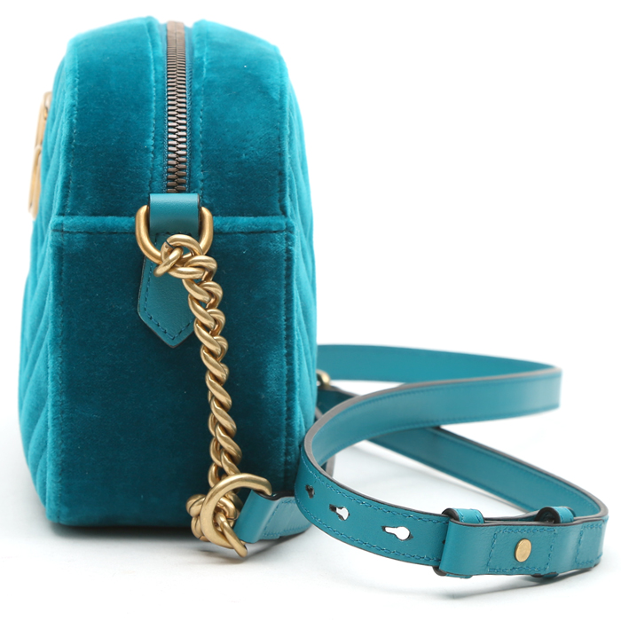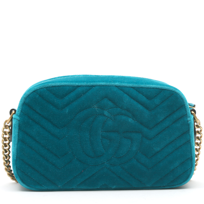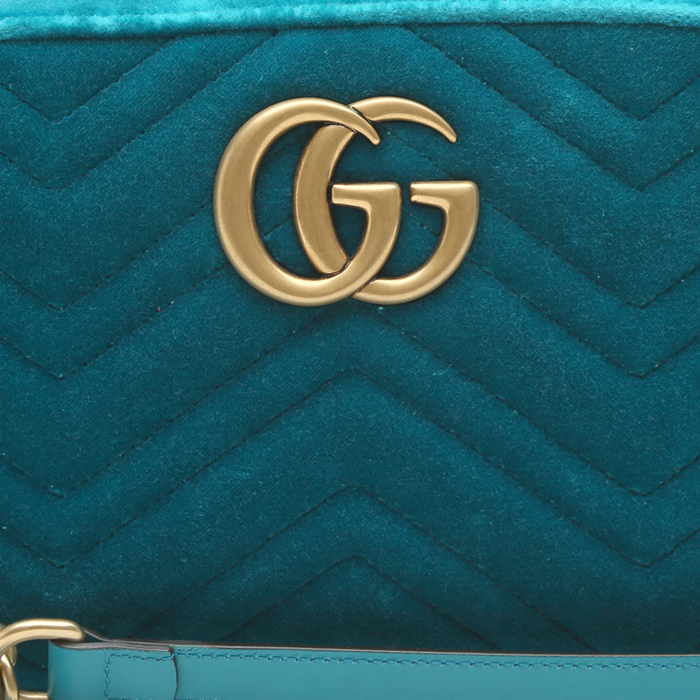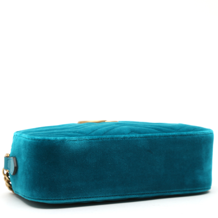 Gucci GG Marmont Camera shoulder bag in blue quilted velvet
