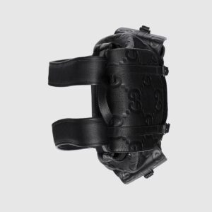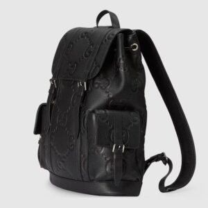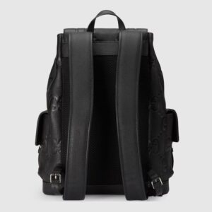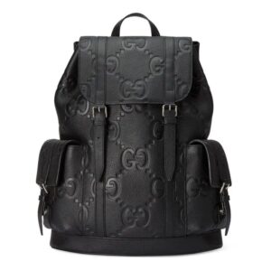 The all-black jumbo GG design returns for Pre-Fall 2023 atop a selection of leather luggage pieces. A reinterpretation of Guccio Gucci’s initials, the motif is an evergreen of the House that appears prominently in maxi size for an eye-catching logo feel. This backpack in the emblematic leather features multiple pockets and easy wear shoulder straps.