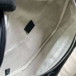The all-black jumbo GG design returns for Pre-Fall 2023 atop a selection of leather luggage pieces. A reinterpretation of Guccio Gucci’s initials, the motif is an evergreen of the House that appears prominently in maxi size for an eye-catching logo feel. This belt bag in the emblematic leather can be worn cross-body for multiple ways to wear.