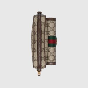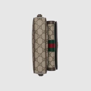 Gucci heritage meets contemporary design with the continuation of Ophidia. With its two archival details, the Web and the Double G hardware, the line takes on new shapes and dimensions in the Pre-Fall collection. This mini bag variation appears in beige and ebony GG Supreme canvas with a gold-toned hardware.