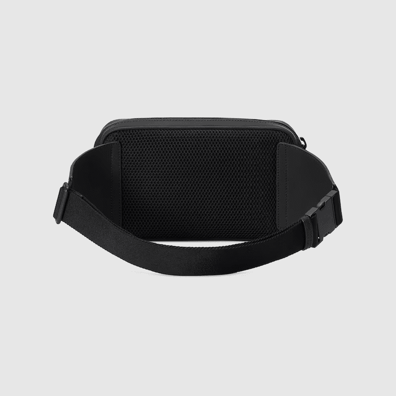 The Gucci color palette is constantly evolving to include more refined hues. New colorways and combinations result in the reinvention of signature styles with a contemporary feel. This belt bag appears in a black variation of the GG rubber-effect leather, complete with a tonal padded mesh on the back.