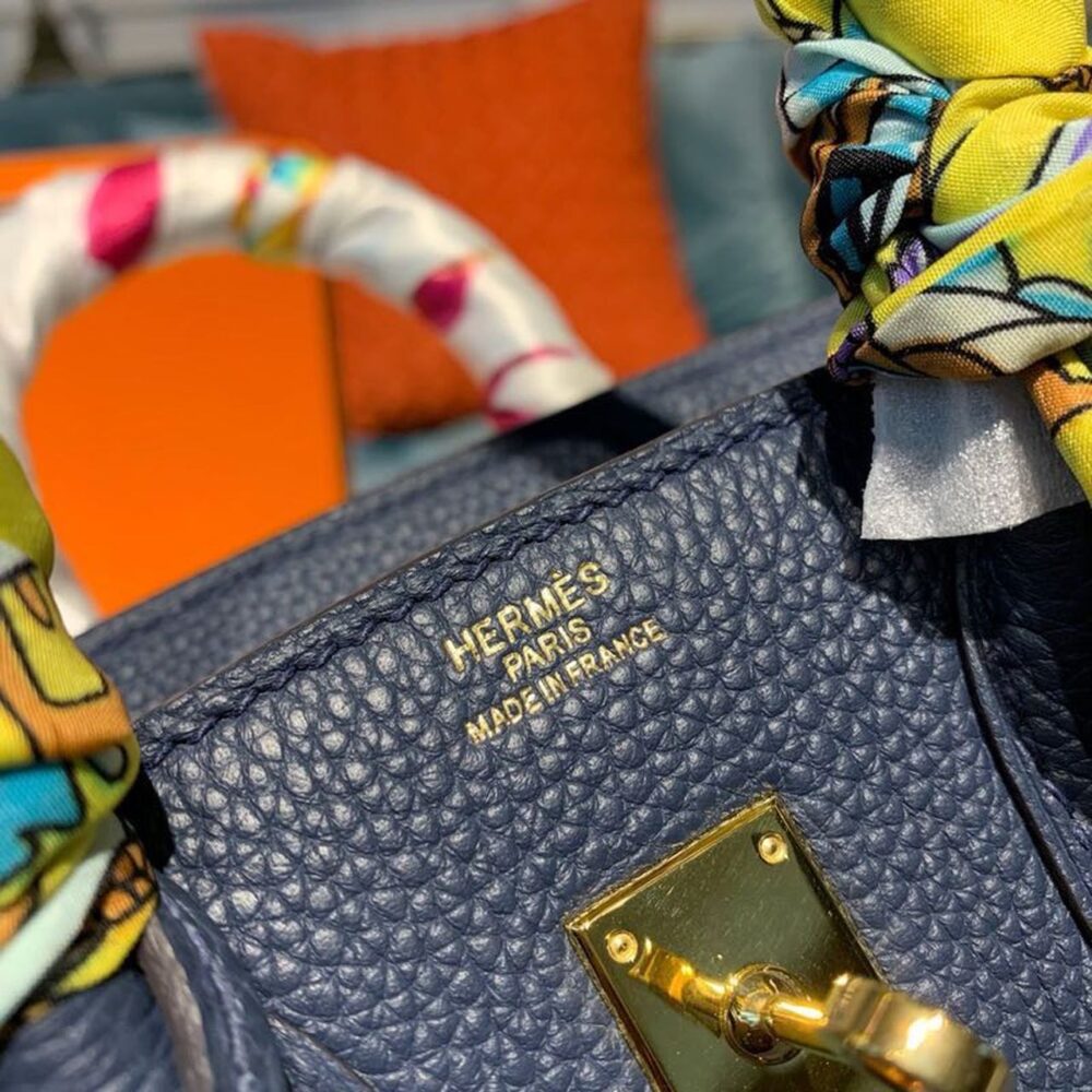 Hermès bags are considered the ultimate luxury item the world over. Hand stitched by skilled craftsmen, wait lists of a year or more are common. This Birkin has tonal stitching, a front toggle closure, a clochette with lock and two keys, and double rolled handles. This bag is also known to hold the shape of the bag well over time.