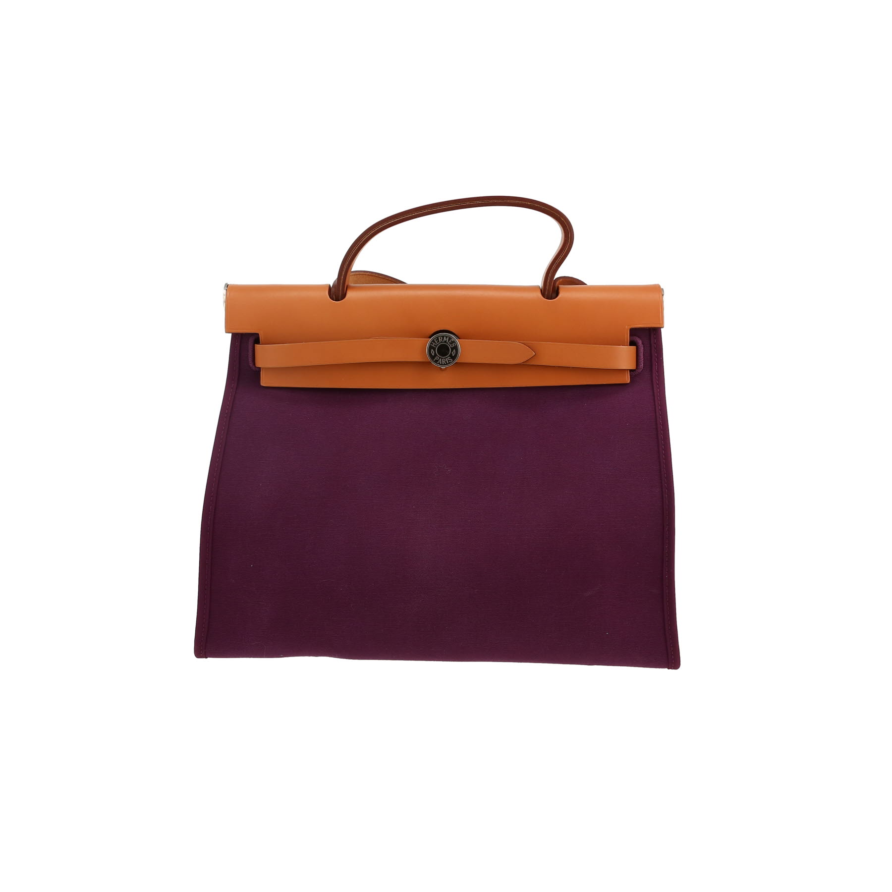Hermès Herbag bag worn on the shoulder or carried in the hand in purple canvas and Hunter cowhide