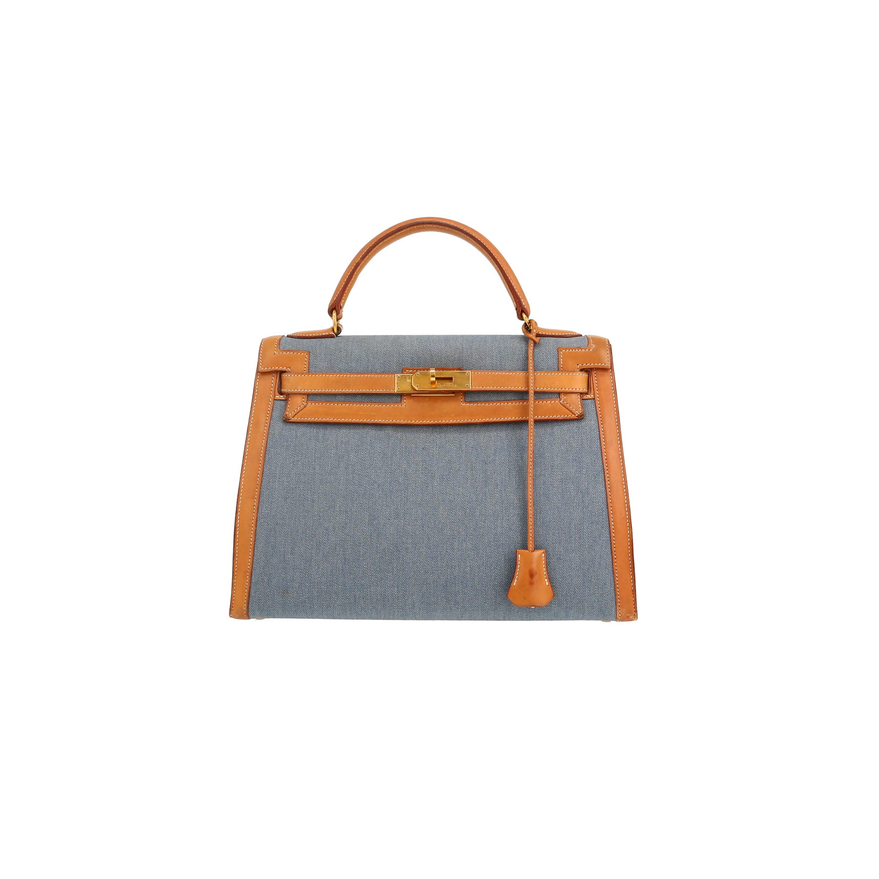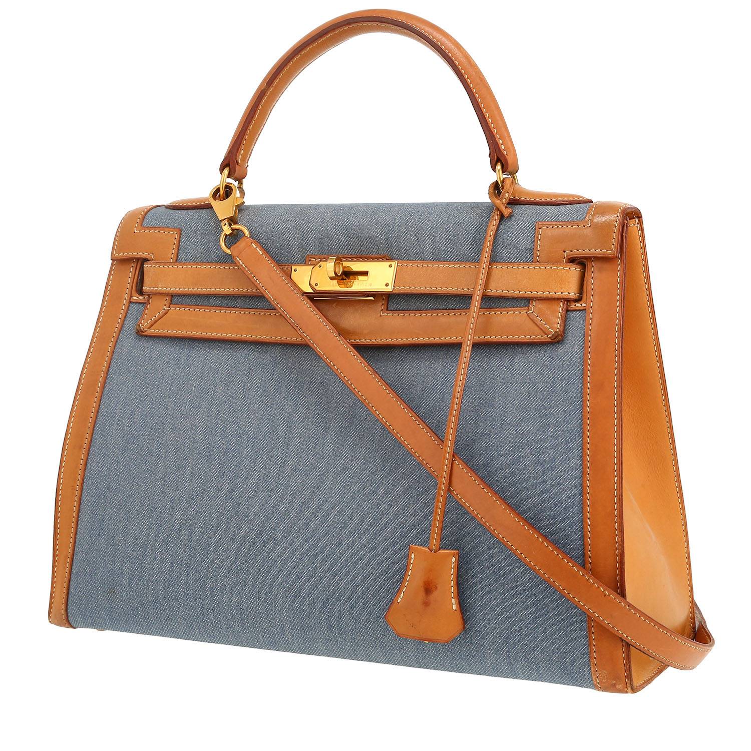 Hermès Kelly 32 cm handbag natural leather and blue denim canvas