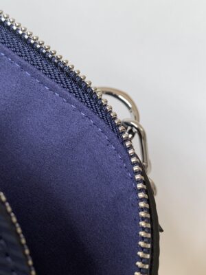 25 x 19 x 11 cm (Length x heightx width ) •Epi Leather•Removable leather strap•Leather trim•Double zipper for secure closing•Shiny silver color metallic pieces•Microfibre lining•Interior flat pocket