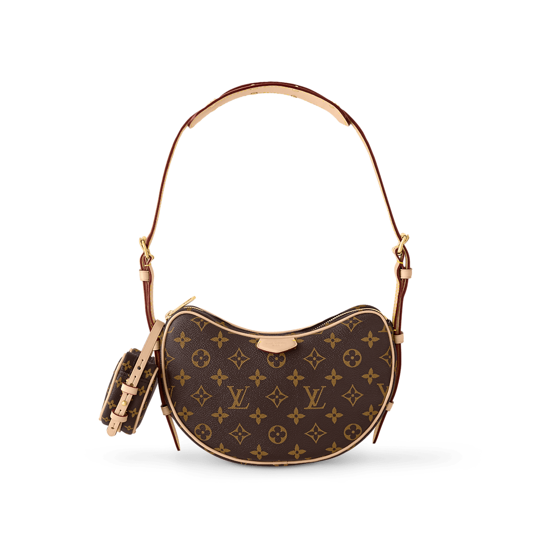 The Croissant MM handbag is made from Monogram coated canvas with natural cowhide-leather trim and comes with an adorable miniature version of the same bag. Thanks to its removable and adjustable strap, this versatile bag can be worn cross-body, short- or long-shoulder, and with or without the matching mini bag.