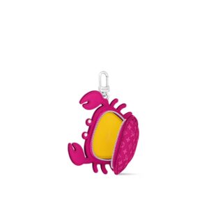 The LV Crab bag charm is a delightful gift that also doubles as an earphones case. Covered in a lighter-toned Monogram canvas, the accessory features leather claws and silver-toned studded eyes. As functional as it is charming, it clasps on to any bag strap, belt loop, or keychain.