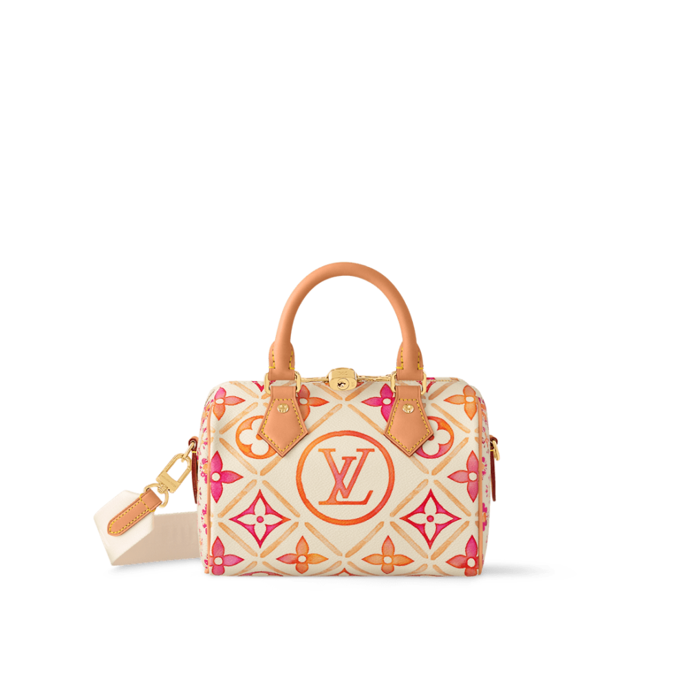 This Speedy Bandoulière 20 bag is from the LV By The Pool collection. The Monogram Tiles canvas is dyed in a unique watercolor hue, with the LV Circle logo cleverly placed in the center. The exquisite shape can store a mobile phone and a short wallet.