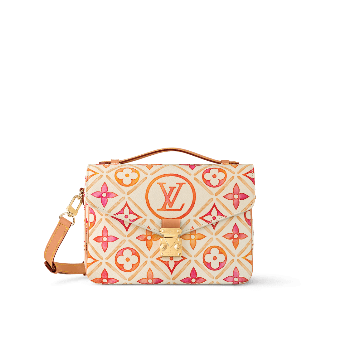 The Pochette Metis handbag is made from Monogram Tiles canvas, with its vibrant colorway and intricate mix of shades, and features the LV Circle just above the S-lock closure. This satchel-style bag is fitted with an elegant top handle and a long removable strap for shoulder or cross-body wear.