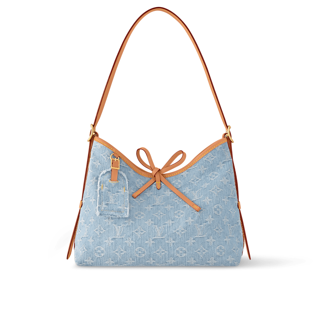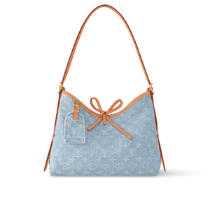 Made from 100% organic cotton, this Carryall PM in Monogram Denim is part of the LV By The Pool Collection. The stonewashed treatment of the light-blue and white Monogram gives the bag a casual elegance. The design includes a matching, removable pouch and three inside pockets. The strap adjusts for hand, shoulder, or cross-body carry.
