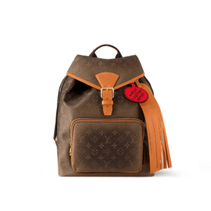 Part of Pharrell Williams’ “From Paris to Virginia” show for the Fall-Winter 2024 collection, the Montsouris Backpack is crafted from Monogram Dust canvas and aged cowhide-leather trim. It features a red “Marque L.Vuitton Déposée” charm and a non-functional version of the House’s name tag with fringes. The top handle and shoulder straps give carry options.