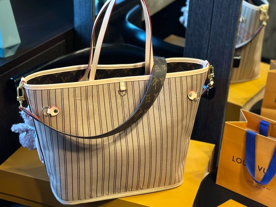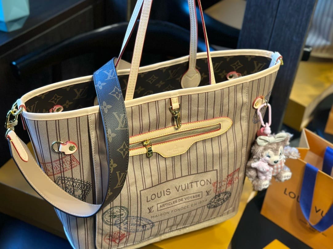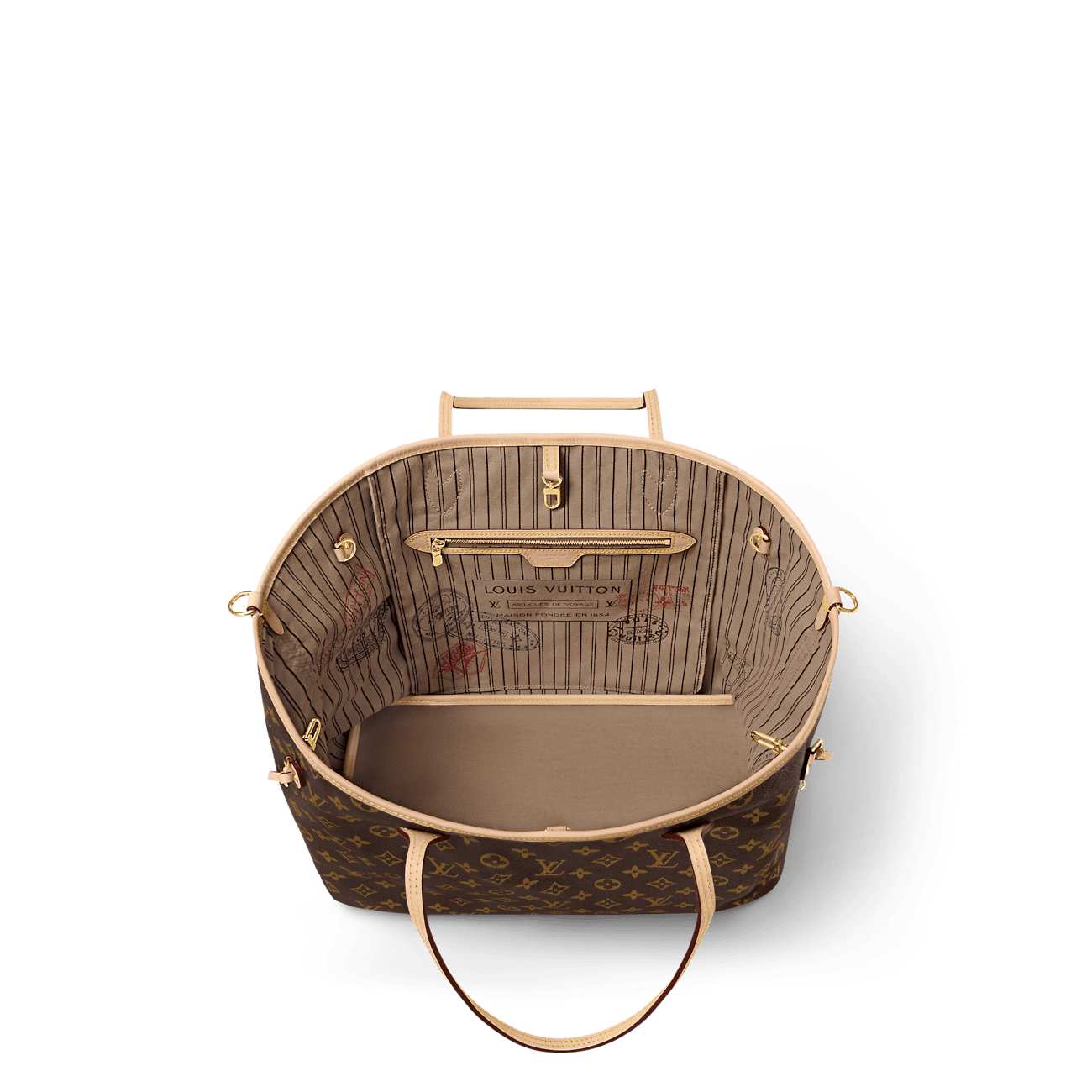 The iconic Neverfull handbag is reimagined for the season with a new reversible design. Gleaming with gold-toned hardware, this Neverfull Bandoulière Inside Out GM edition is crafted from signature Monogram canvas and reveals a colorful stamp pattern on the reverse. The versatile model also includes side hooks to transform the style into a hobo shape. It also features a removable strap that allows for shoulder carry.