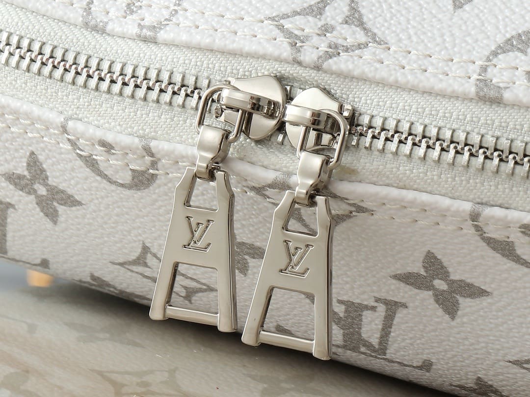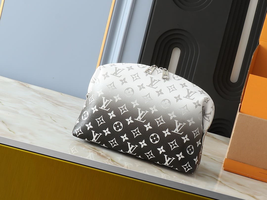 Monogram Nylon brings winter style to this Cosmetic Pouch GM. The recycled nylon, more resistant and softer than ever, features a LV Monogram silkscreen print whose silver finish adds relief to the motif. Small enough to fit into most bags, the washable textile lining and inside flat pocket make it practical.