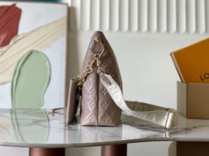 A statement addition to the Coussin line, this new Hobo model strikes the balance of fashionable and functional. Showcasing signature design details from the collection, it is crafted from smooth padded leather embossed with the House’s Monogram and has an iconic chunky chain accented with gold-toned hardware. The large removable textile strap offers multiple wearing options. This versatile piece also includes a removable zipped pouch and is sized to store a laptop.