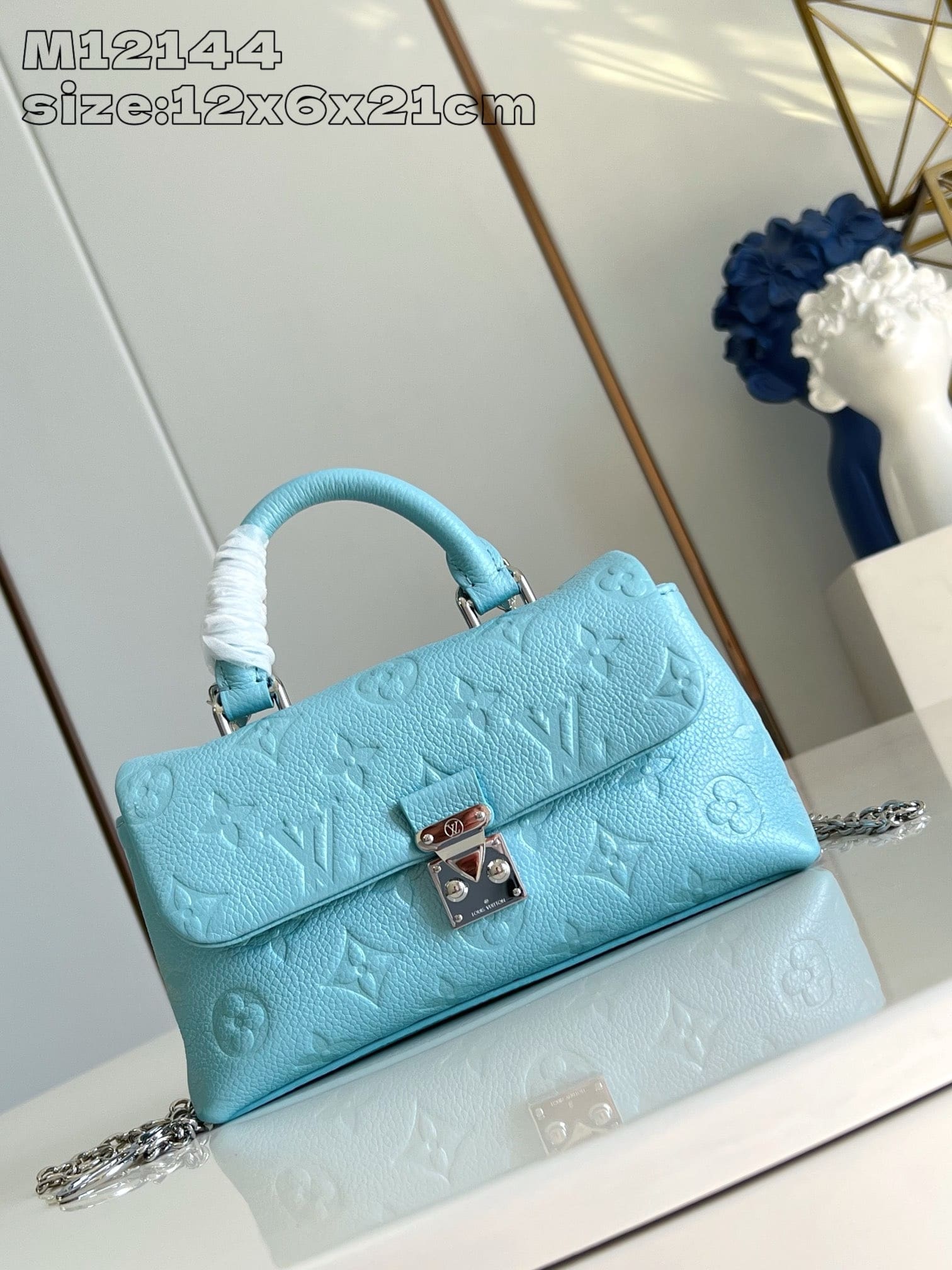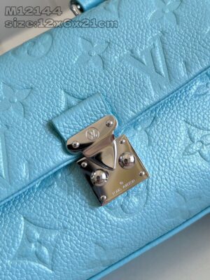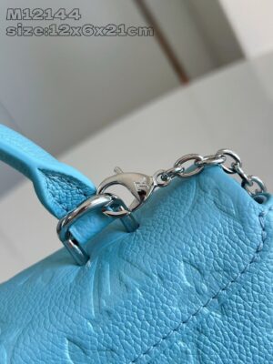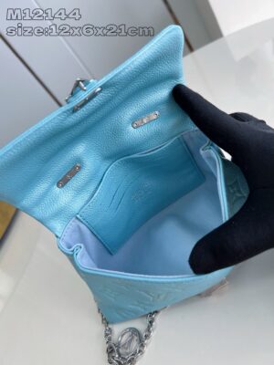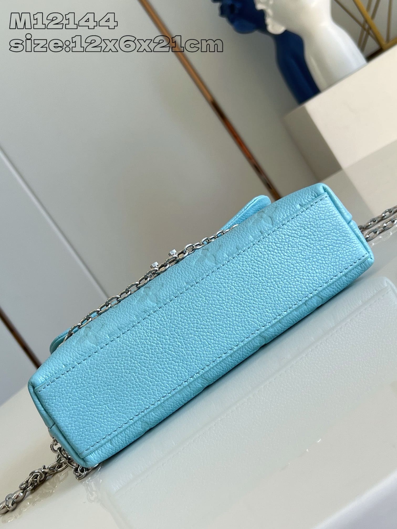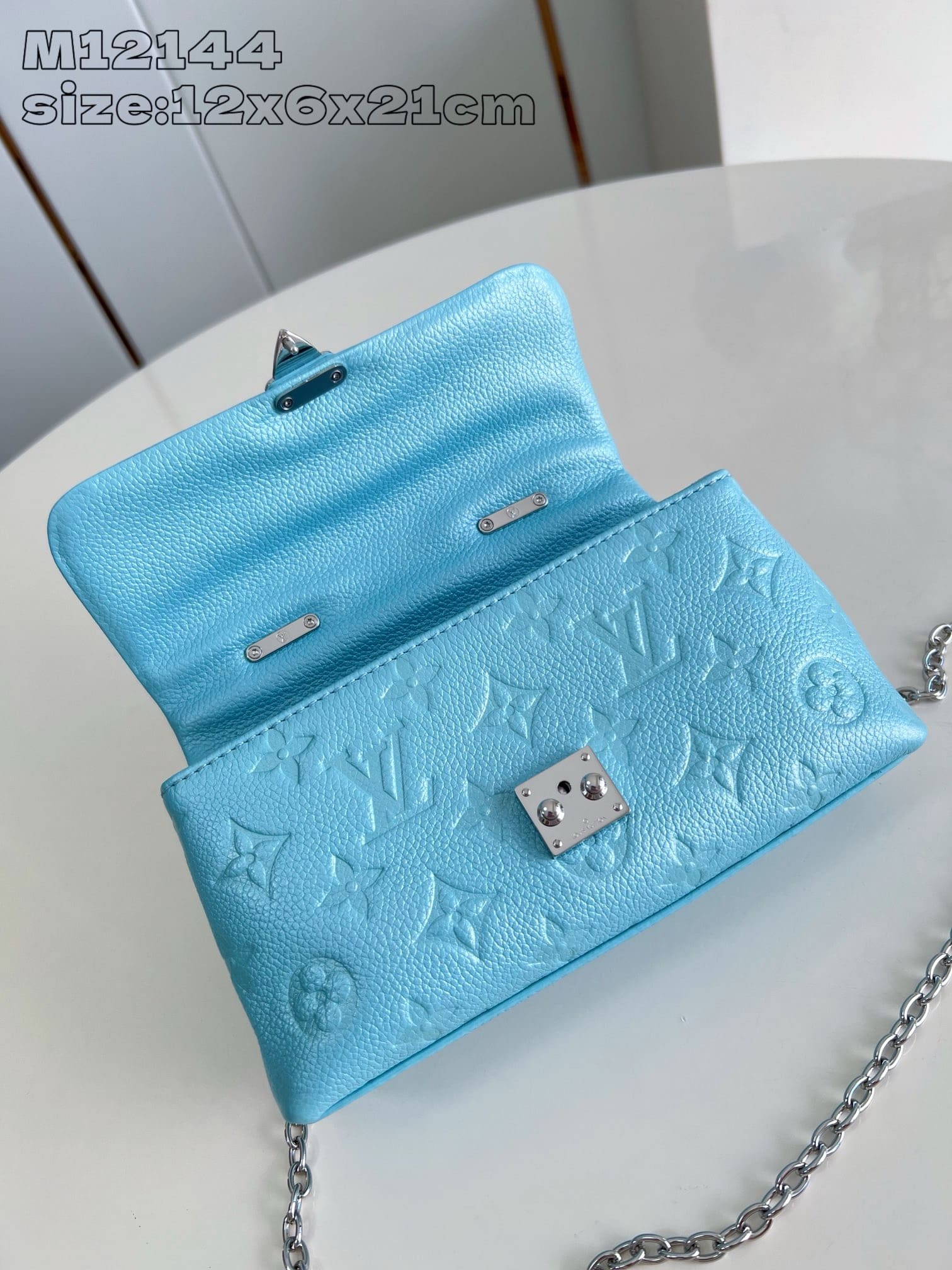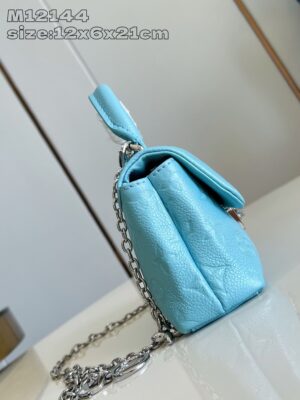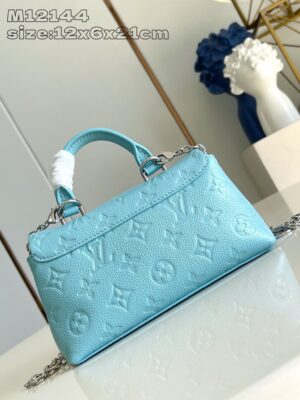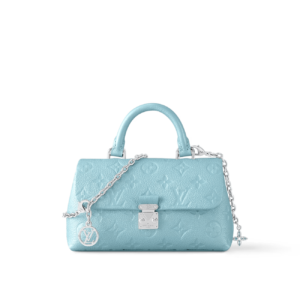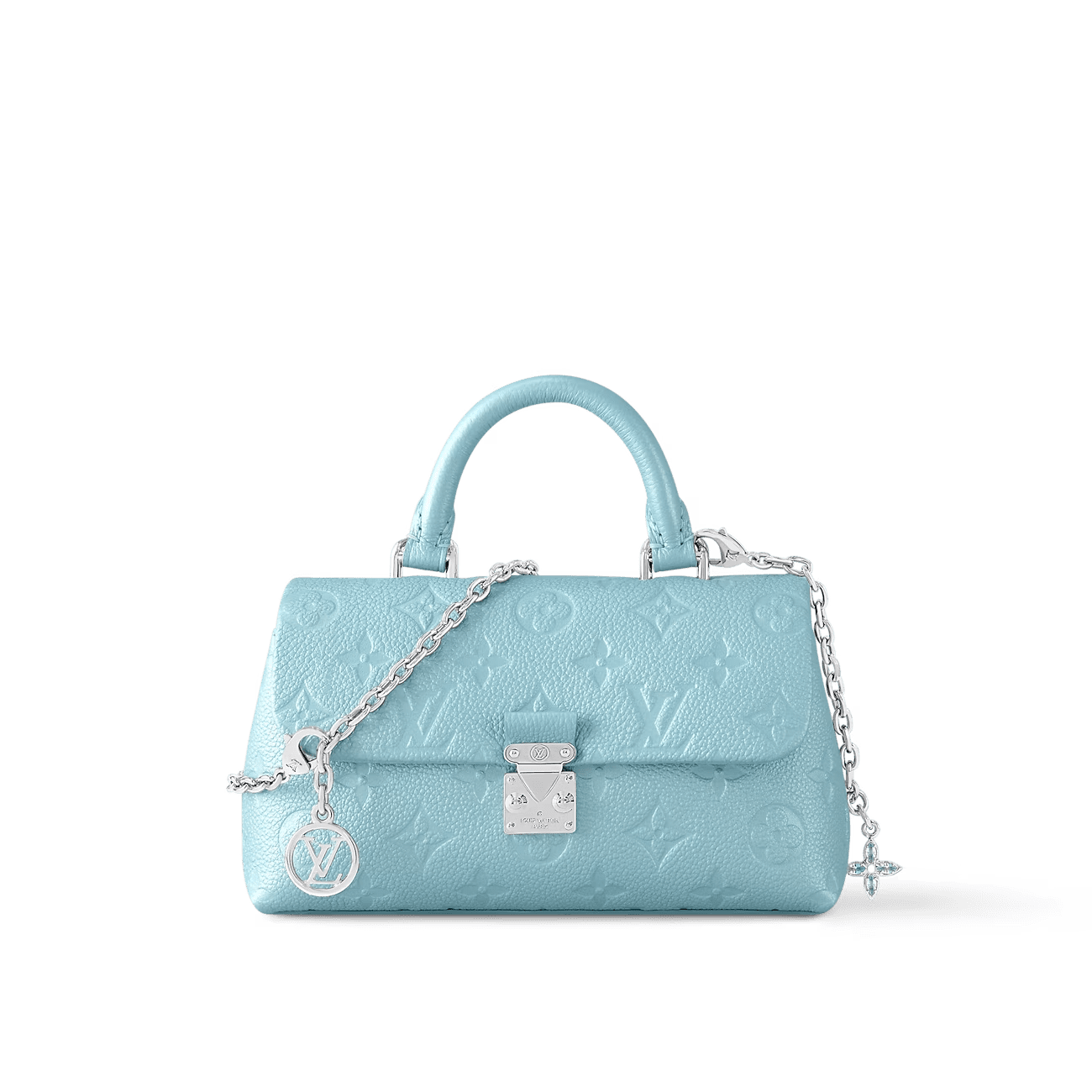 The LV Ski collection presents this ‘Shimmery’ update on the Nano Madeleine handbag in a sophisticated Azur Frost shade. Crafted from signature Monogram Empreinte leather, it is accented with an iconic S-lock closure and a matching silver-toned chain adorned with a crystal-embellished charm. Wear it cross-body, over the shoulder or carried by hand.