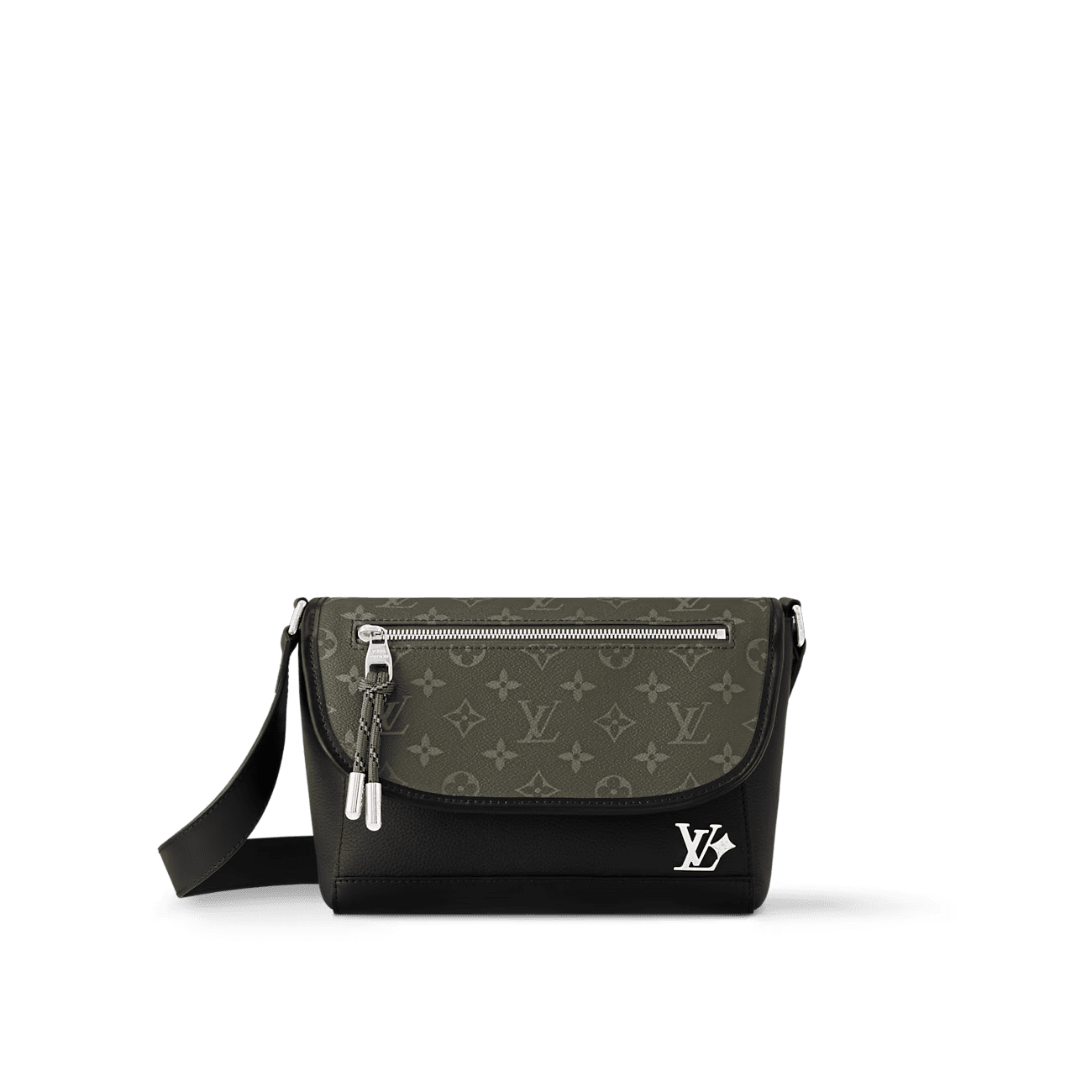 The Pulse Messenger is a modern messenger bag made from a combination of grained leather and Monogram canvas. It features an outside pocket with a sporty cord zip-pull on the bag’s flap and another zipped pocket on the underside of the flap. The sophisticated leather strap has a side loop to adjust the length.