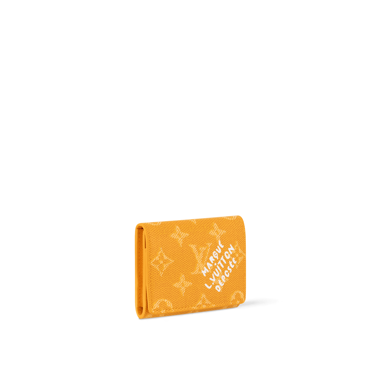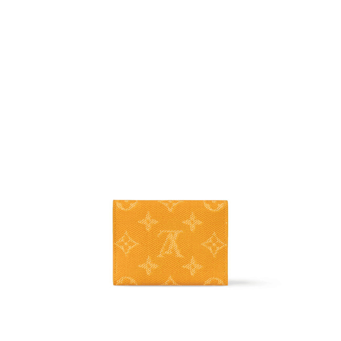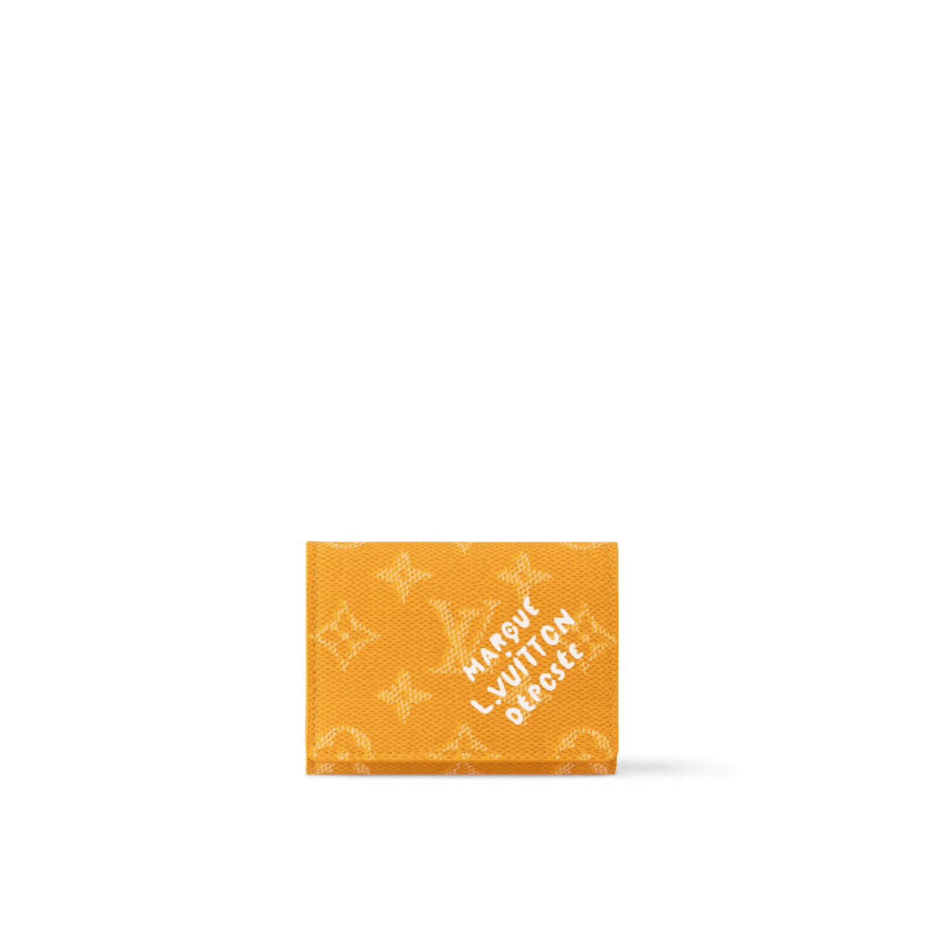 The Business Card Holder in Monogram Heritage canvas has a slim design that slips easily into a pocket or bag. Its flap, secured by a hidden press-stud, opens to reveal a gusseted compartment and a card slot. Lined in cowhide leather, it features the “Marque L.Vuitton Déposée” signature, originally found on Damier canvas.