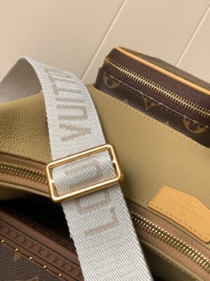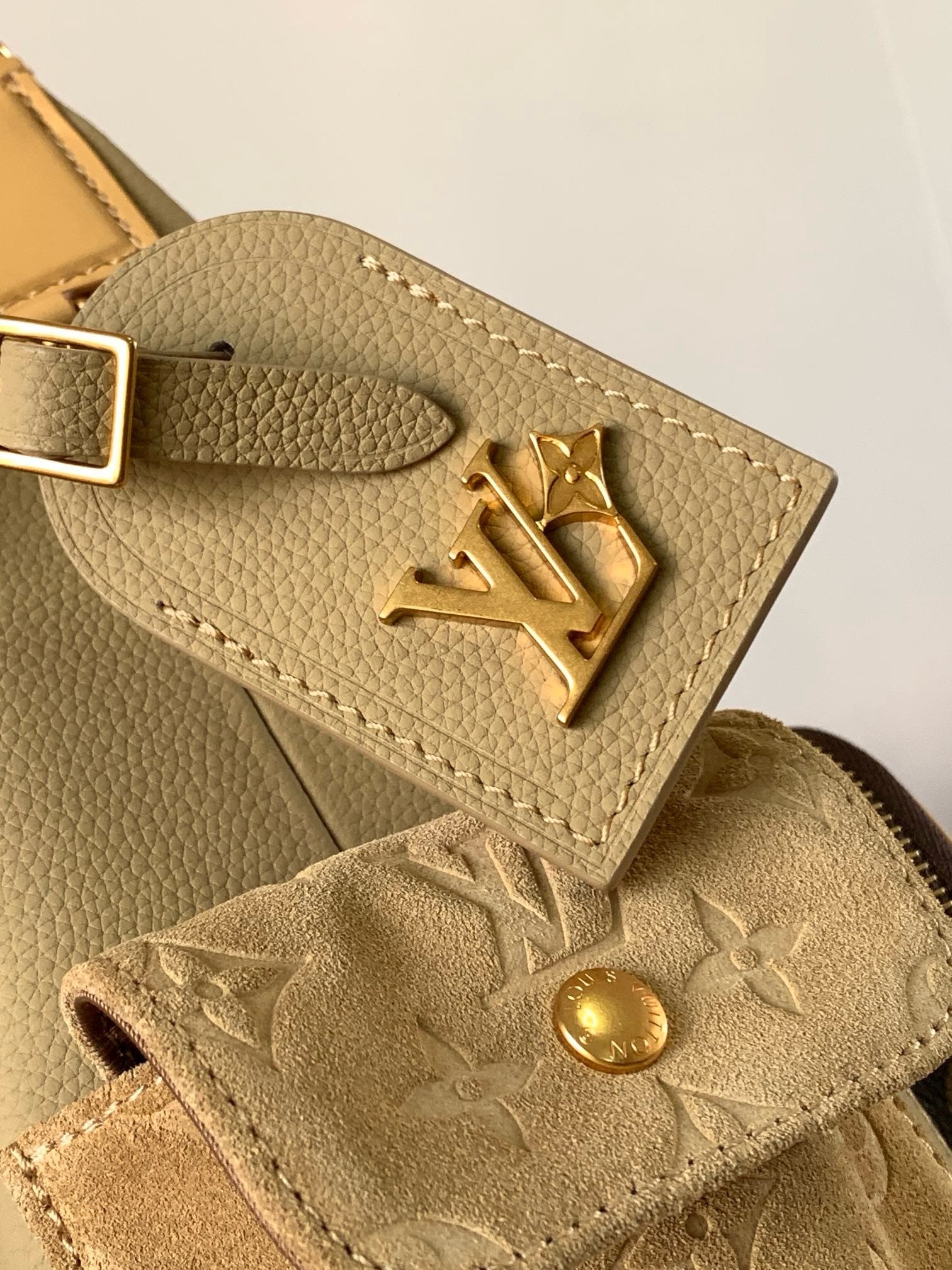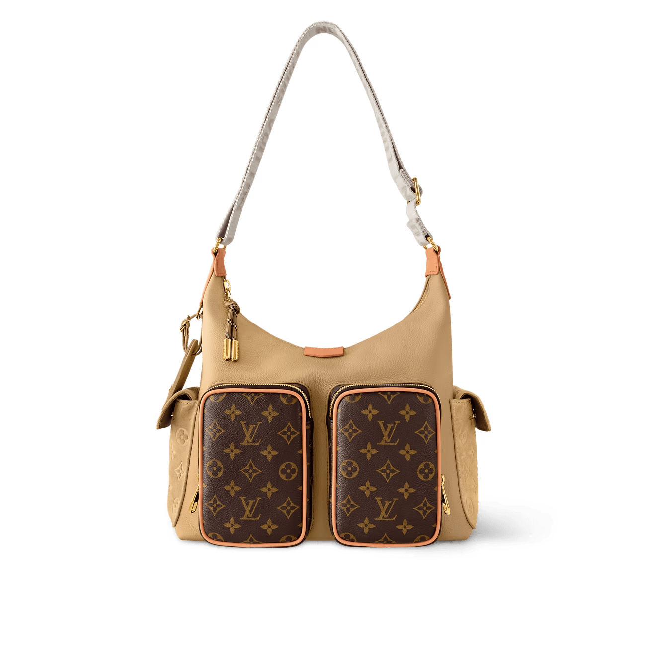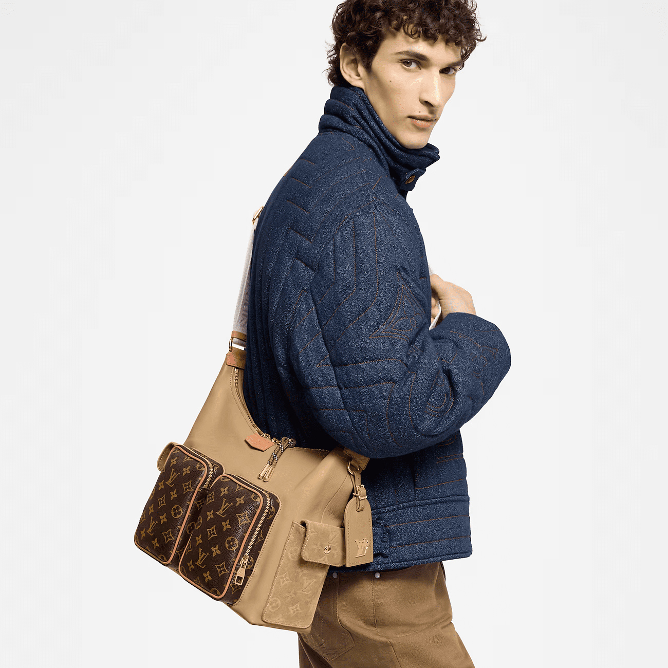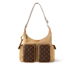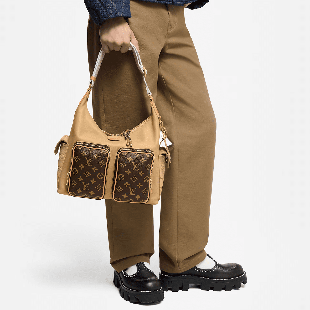 The Hobo Cargo bag in grained cowhide leather and Monogram coated canvas effortlessly marries comfort with refined elegance. Its sleek design includes multiple outside pockets – two zipped ones on the front and two open ones on the sides – in addition to the roomy main compartment. The signed textile strap adjusts for comfortable carry.