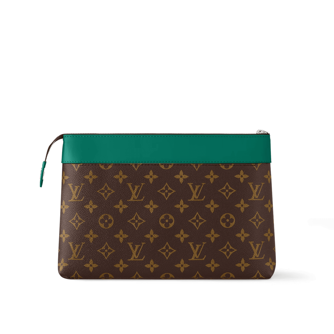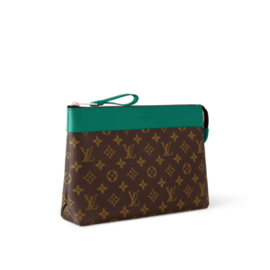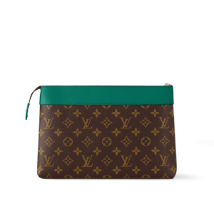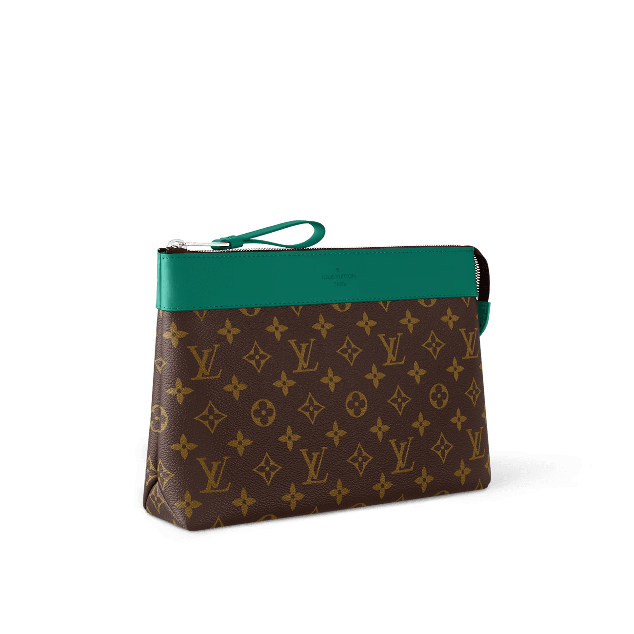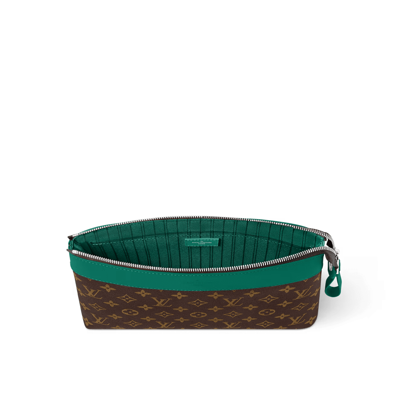 This Pochette Voyage Souple combines the House’s classic Monogram Macassar coated canvas with cowhide-leather trim in modern colorway. The same color is found on the interior lining, itself inspired by the pattern of the linings in the House’s vintage trunks. This soft pouch is great to organize belongings inside a larger bag.