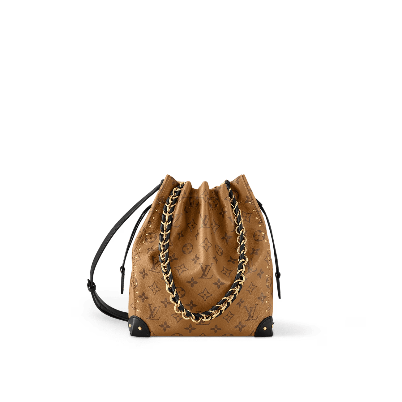 The 2025 Cruise Early Spring Collection reinterprets the classic Noé handbag, adding a new member to the Trunk family. The Monogram Reverse canvas bag is decorated with a dazzling braided chain, and the leather corners and drawstring closure continue the iconic details. You can recreate the runway look by hand or crossbody.