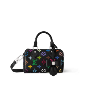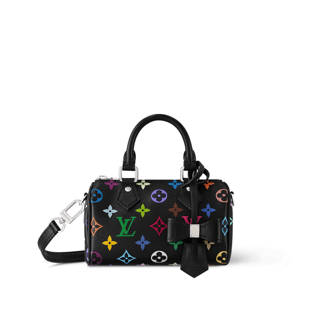 The scaled-down Nano Speedy makes a playful statement in Monogram coated canvas, which has been reworked in upbeat tones as part of the re-edition of the Louis Vuitton x Murakami collection. Natural cowhide leather trims add a timeless touch, as do two Toron top handles and a gleaming golden padlock in homage to the House’s travel heritage. Complete with a removable, adjustable strap and an exclusive LV x TM keybell.