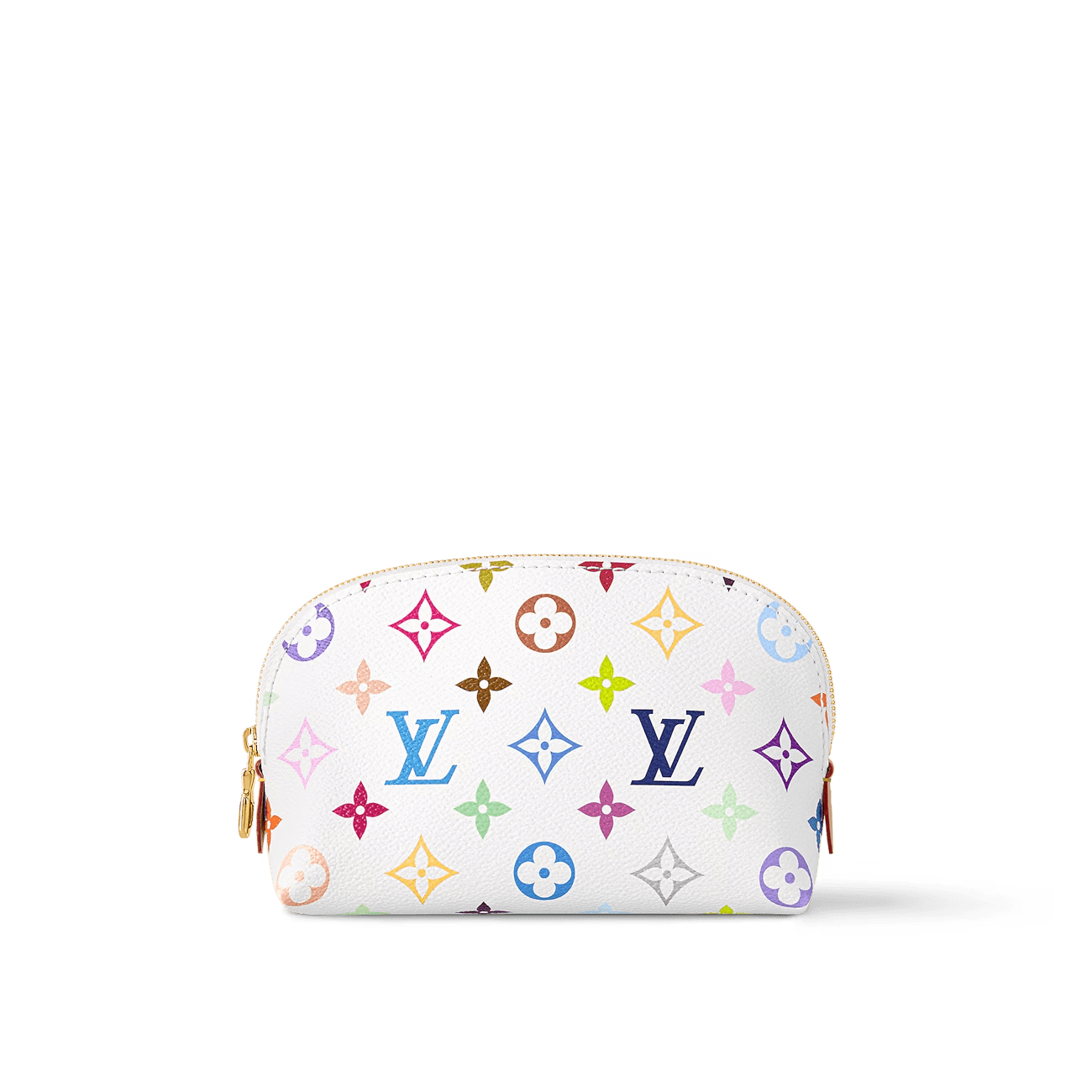 Colorful and compact, this essential Cosmetic Pouch PM is part of the celebratory cross-category Louis Vuitton x Murakami collaboration. Crafted from Monogram coated canvas, the House’s iconic signature is revisited in the playful rainbow tones of the world-renowned artist’s work. It is fastened with a golden zipper and finished with a practical washable lining complete with an additional flat pocket for small items.