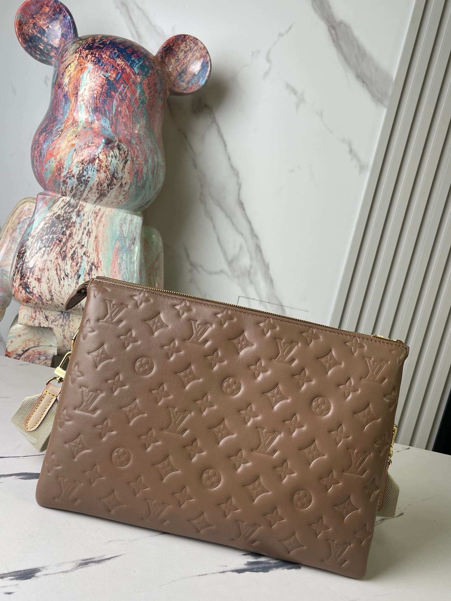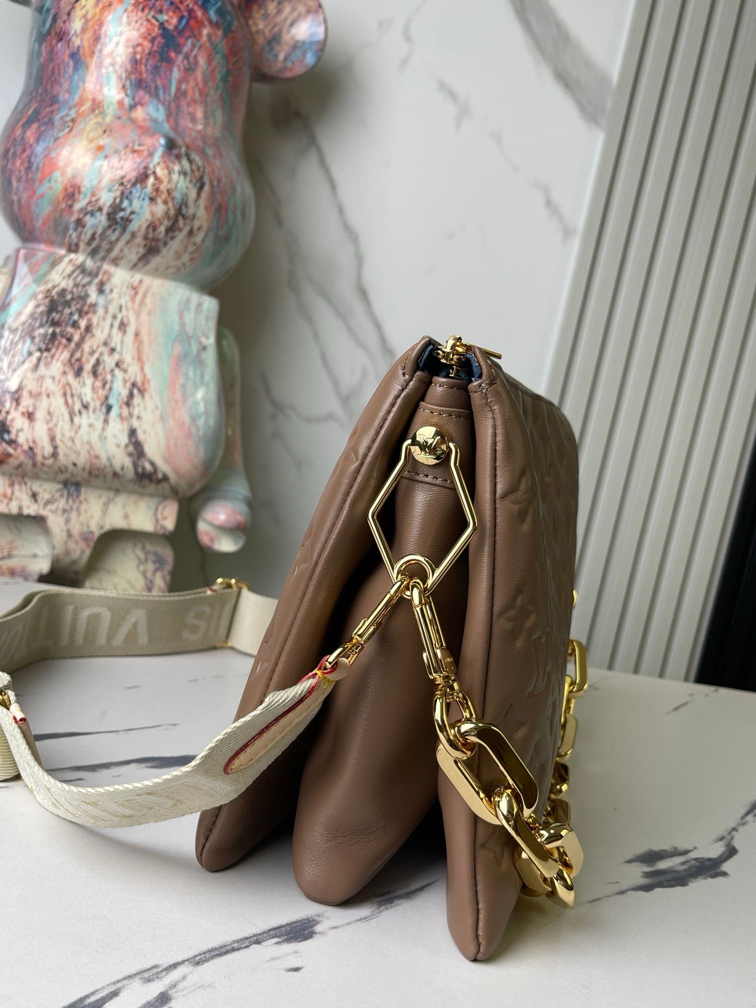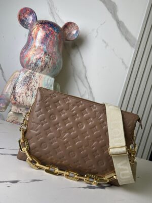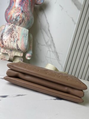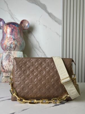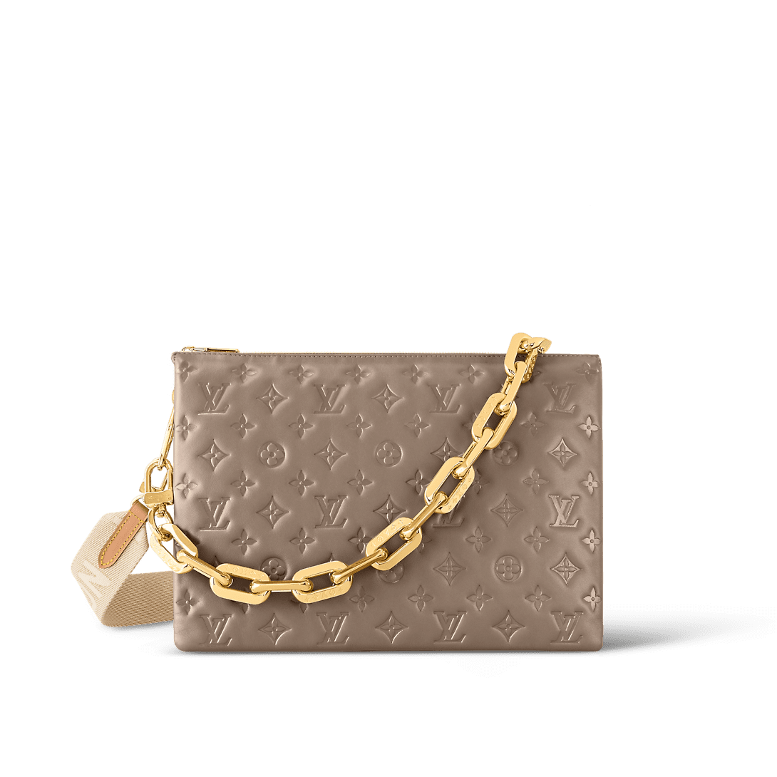 The most eye-catching bag of the Fall-Winter 2021 collection, the Coussin MM handbag is fashioned from puffy lambskin, embossed with a Monogram pattern. Voluminous, soft and supple, the bag almost feels like a pillow. An adjustable textile strap allows for shoulder and cross-body carry, while the new Edge Chain invites fashionable under-the-arm styling.