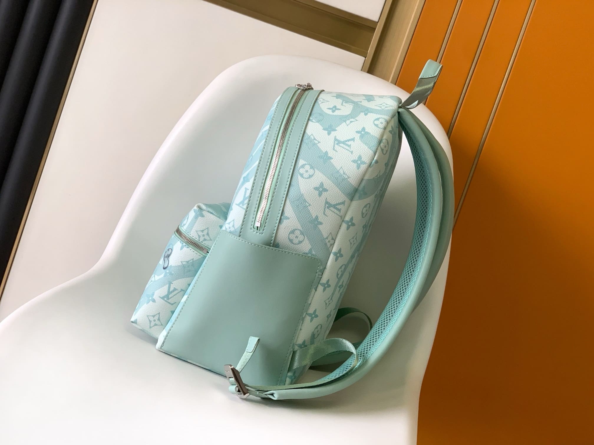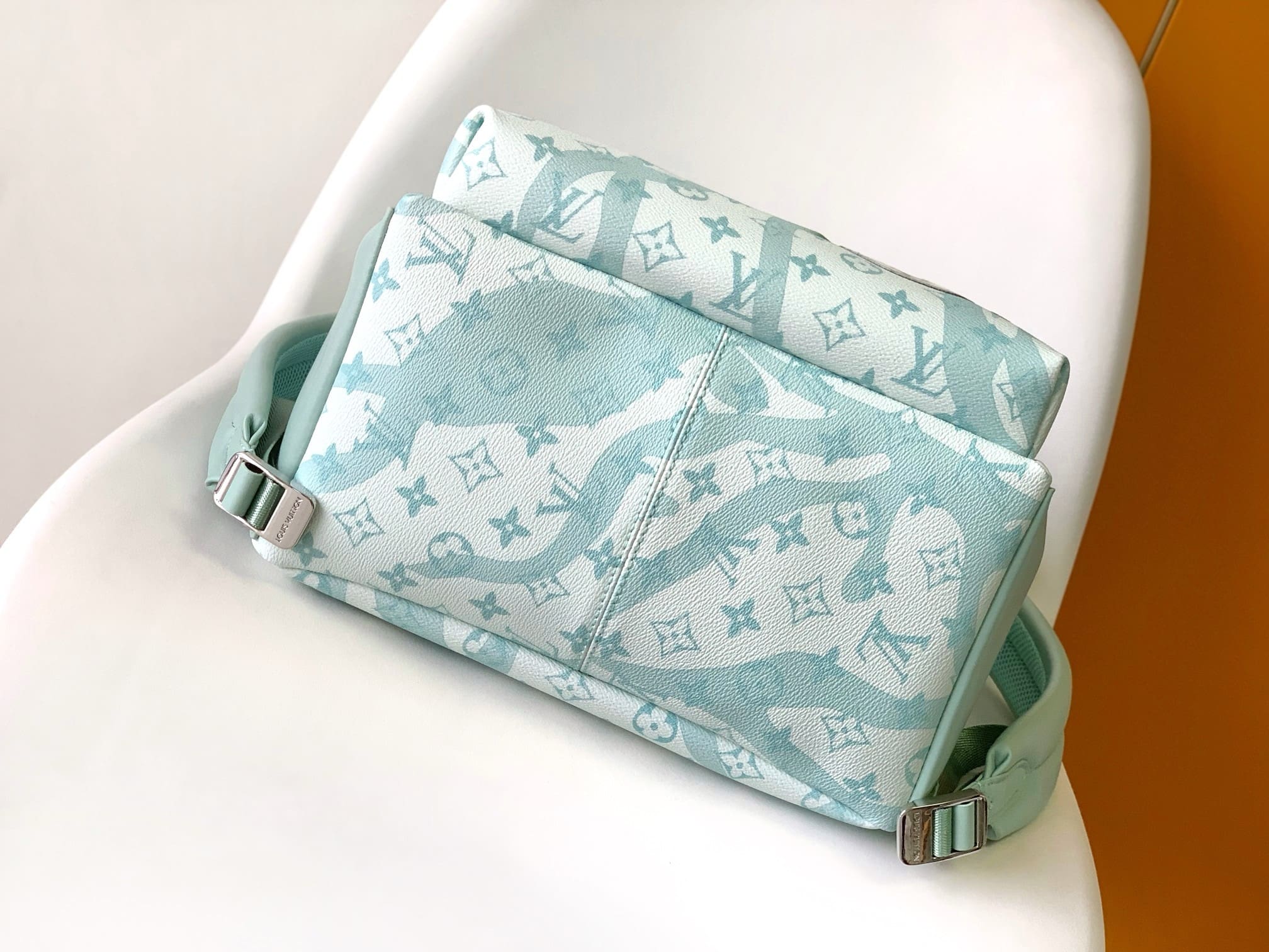The Discovery Backpack is made from Monogram Aquagarden canvas, an ode to an aquatic world from which the Monogram emerges sprinkled with enchanted waterdrops. The innovative multi-step printing process gives a strikingly realistic aspect to the splashes of water. The two side pockets and a front zipped pocket make this backpack eminently practical.