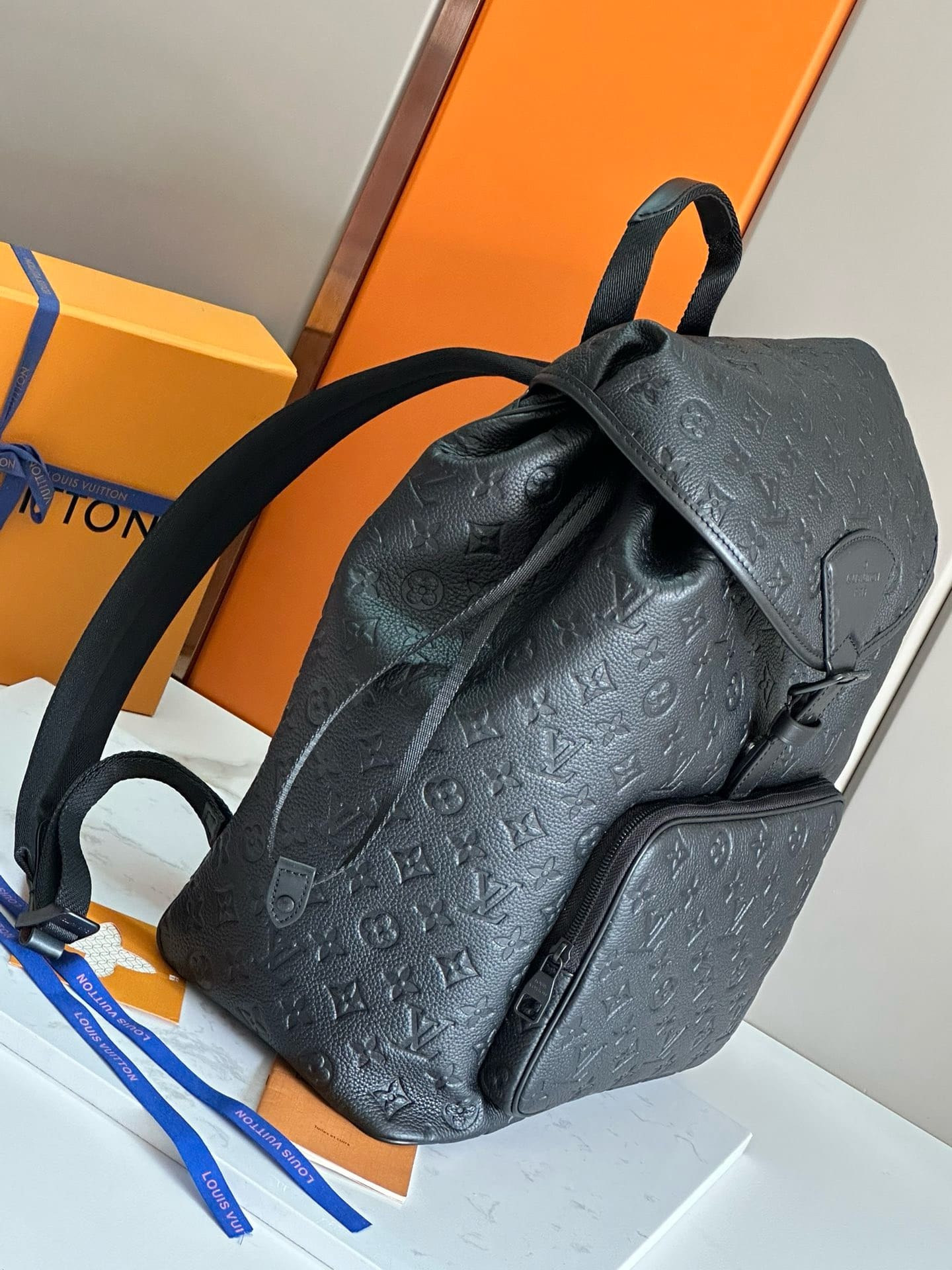 Made from black Taurillon leather embossed with the Monogram motif, this Montsouris Backpack combines style with functionality. The tone-on-tone black colorway, including the bag’s hardware, gives it understated elegance while the padded compartment, two inside flat pockets, and easily accessible front zipped pocket make it practical.