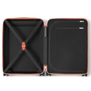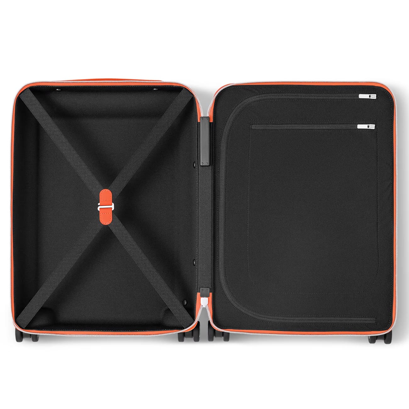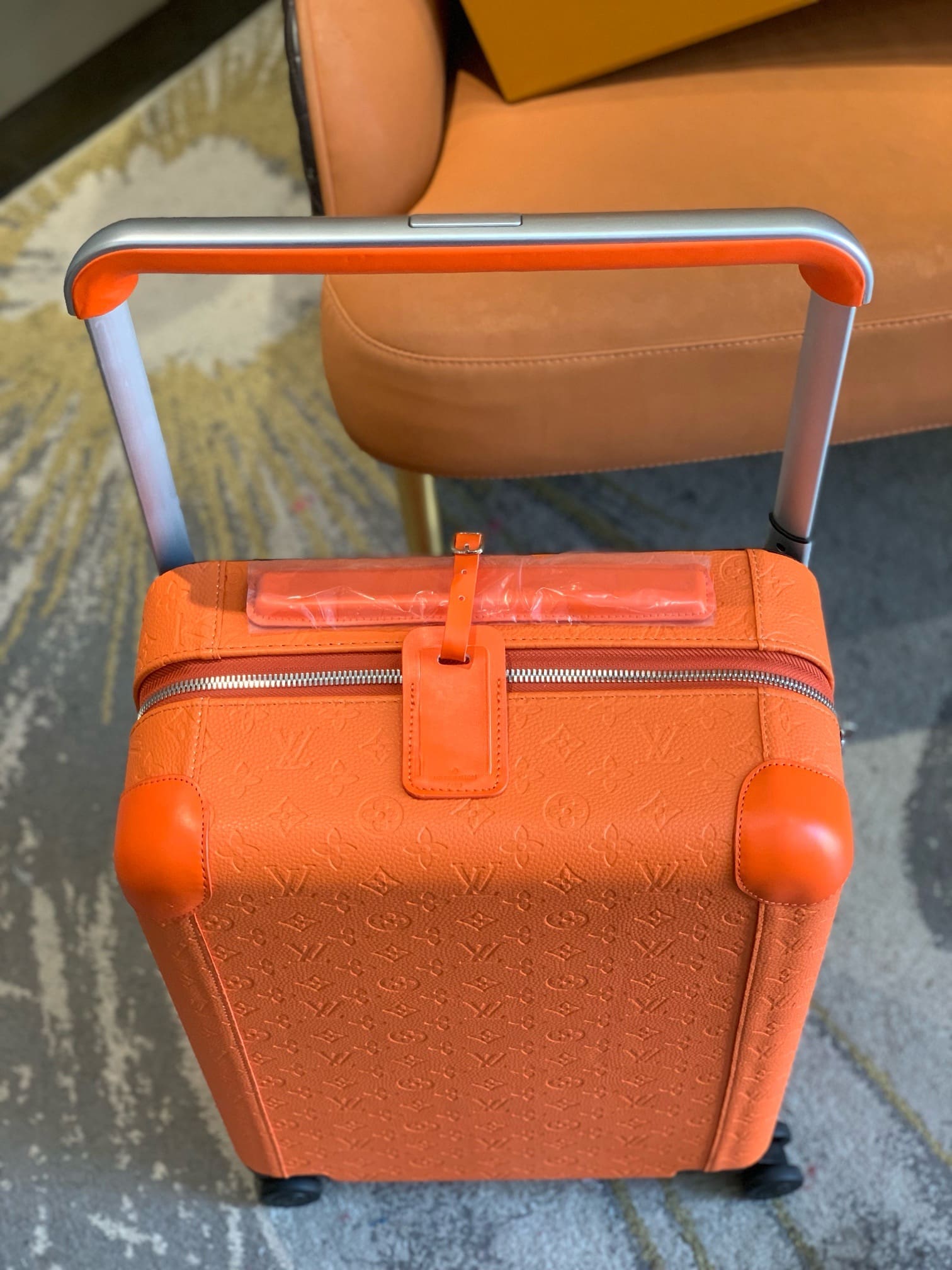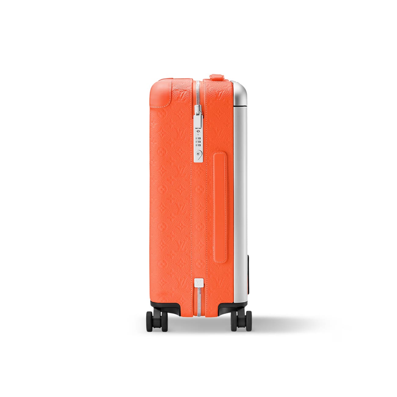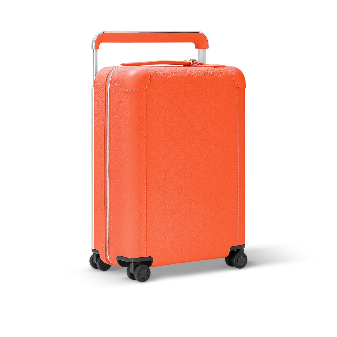 This season, our classic rolling suitcase, the Horizon 55, comes in vividly colored Taurillon leather, embossed with the Monogram motif. Sized to be used as carry-on baggage, it is surprisingly spacious thanks to a wide external cane that means that its interior is completely flat. The four compact wheels make it easy to roll.