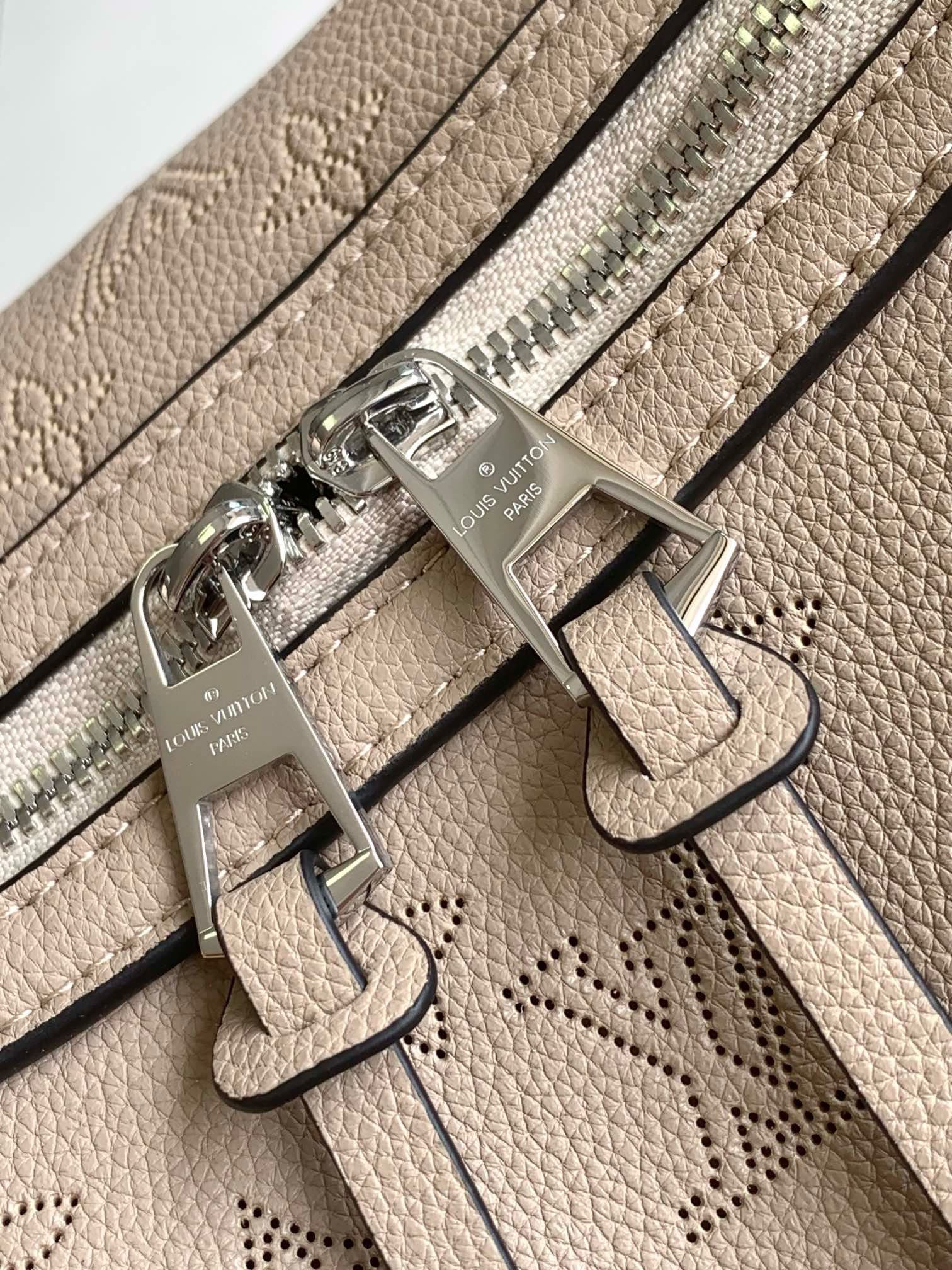 This medium Mahina Hand It All bag is made of fine perforated cowhide leather, with a soft draped texture that highlights the chic silhouette. The delicate shoulder strap and chain and leather braided handles are both detachable, providing a trendy choice for daily travel.