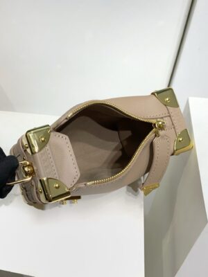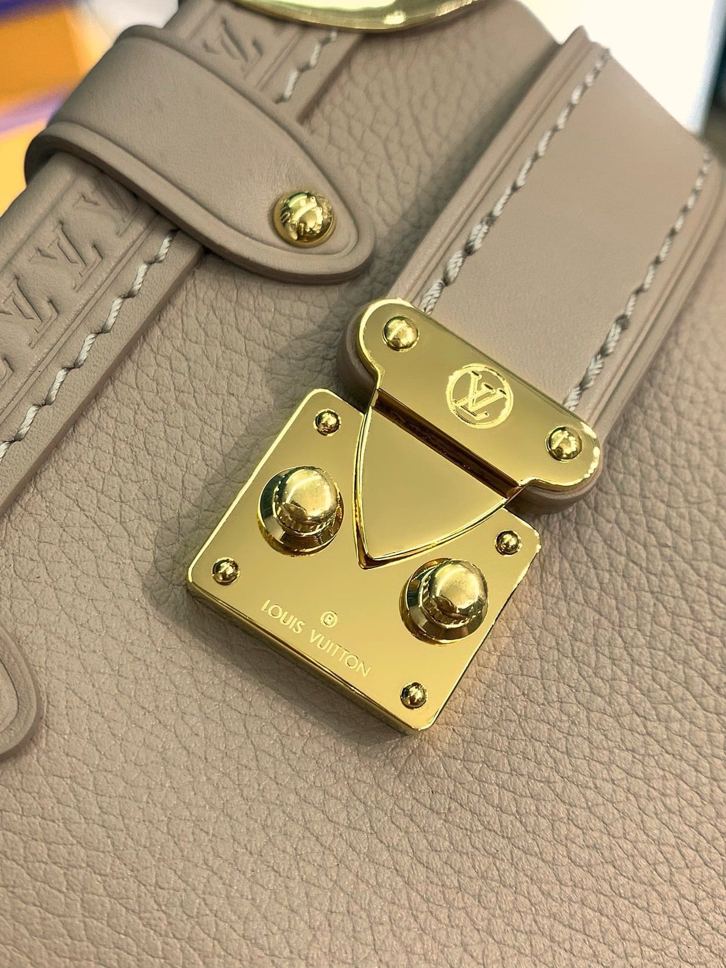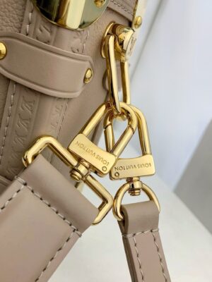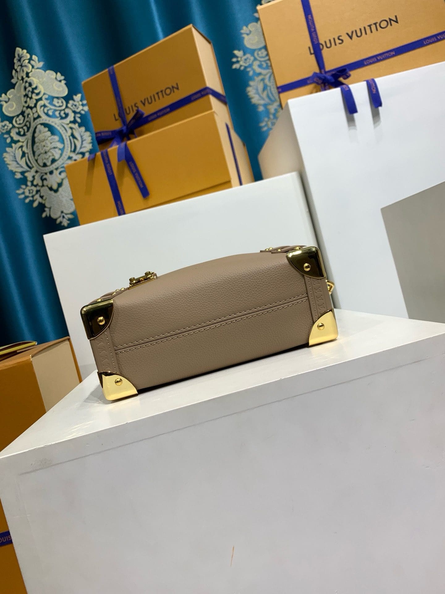 The elegant Side Trunk MM handbag is Creative Director Nicolas Ghesquière’s ode to the House’s historic trunks. Made from grained calf leather with smooth cowhide-leather trim, it features an S-lock and reinforced metallic corners. The removable handle enables hand carry while the detachable and adjustable leather strap adjusts for shoulder and cross-body wear.