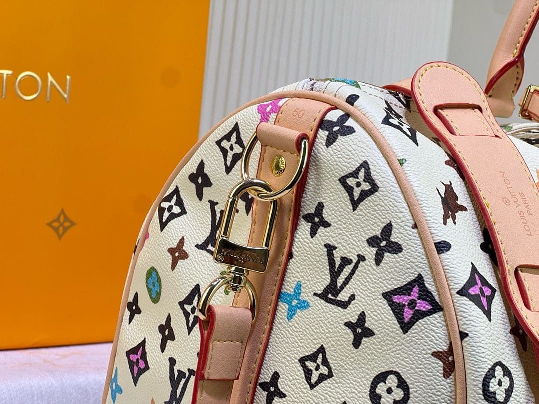 The practical Keepall Bandoulière 45 travel bag looks fresh in Monogram Craggy canvas, Tyler, colorful new reinterpretation of the classic Monogram. It’s signed with the removable wavy name tag. Two rolled-lather top handles and a detachable and adjustable shoulder strap give carry options.