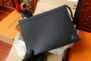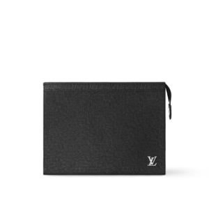 The versatile Pochette Voyage in deep-dyed Taiga leather can be used as a bag inside a bag or hand-carried as a document portfolio. Signed with silver-color metallic LV Initials on the lower righthand corner, this understated bag includes an interior flat pocket and 6 card slots to keep essentials in order.