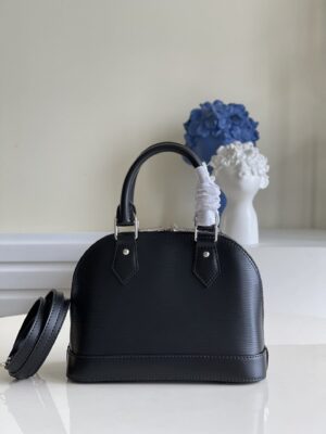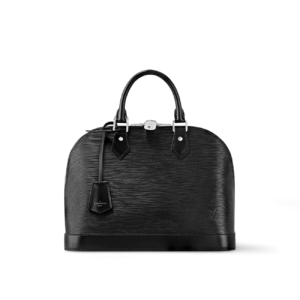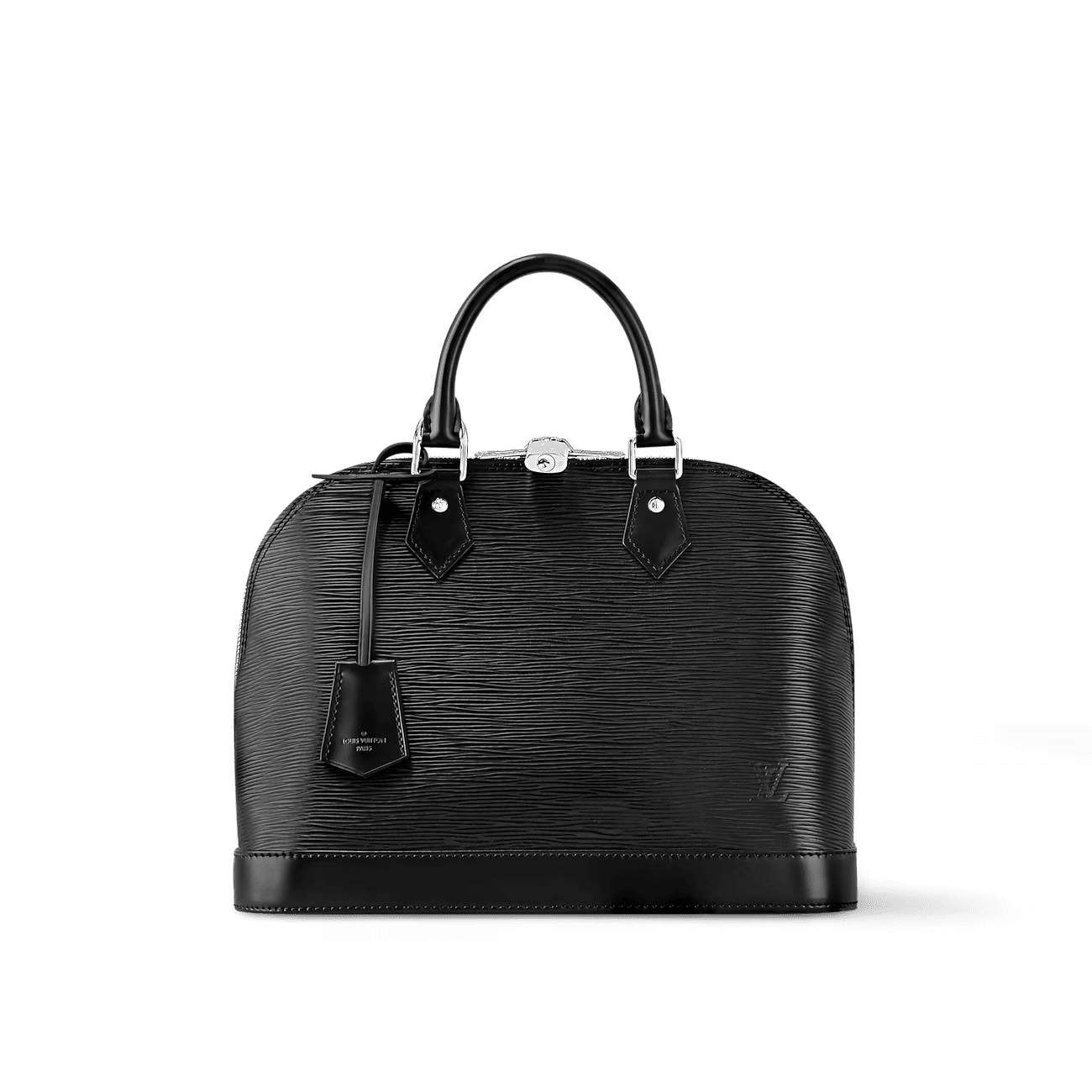 A timeless House icon, the Alma PM handbag is perfect for every day. Its structured lines recall the Art Deco original, designed in 1934. Made from deep-dyed, textured Epi leather, this model displays refined craftsmanship in every detail, from the hand-stitched Toron handles to the silvery hardware and signature key bell. Always elegant, carried by hand or on the elbow.