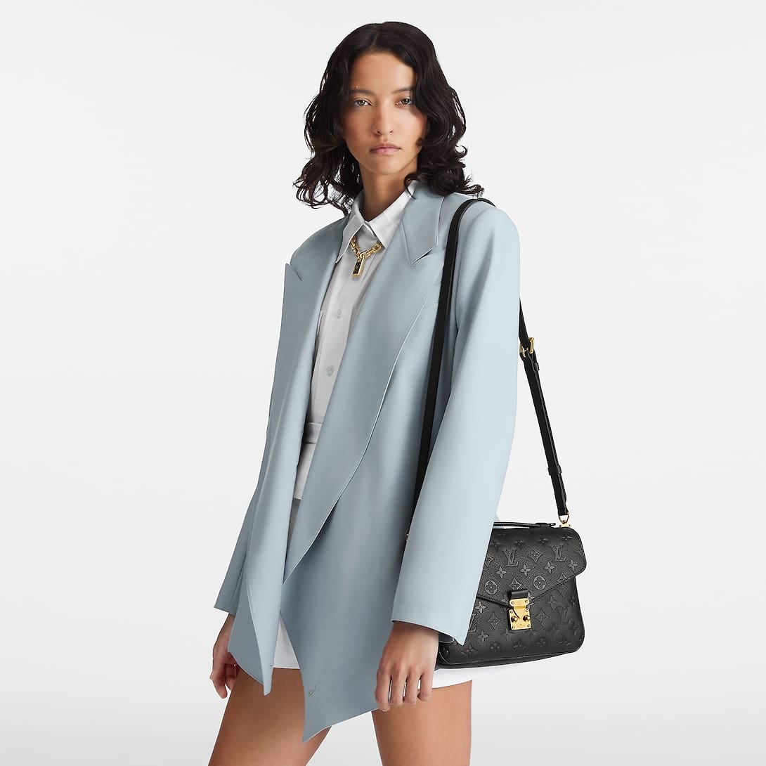 Elegance is personified in the petite shape of the Pochette Metis. Made of supple Monogram empreinte leather, its compact dimensions open up to revea•L many usefu•L pockets and compartments.