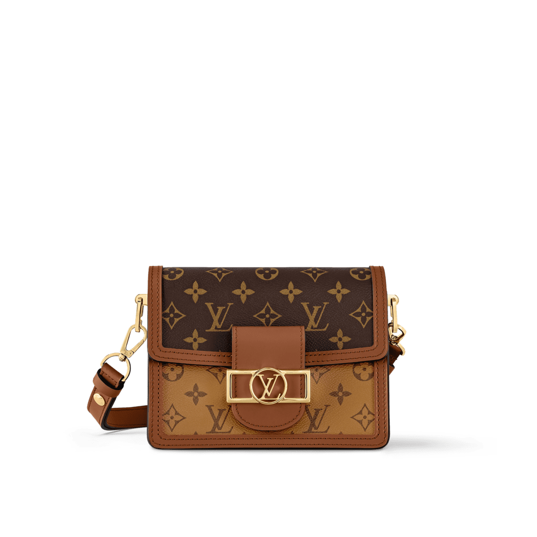 For Spring-Summer 2019 Nicolas Ghesquière unveils a new must-have: the Dauphine Mini handbag. This adorably compact model is crafted from Monogram and Monogram Reverse canvas, trimmed with cowhide-leather. The high-shine LV lock and leather smart strap add a modern twist to this signature piece, which is perfectly sized for day-to-evening wear.