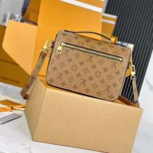 With its distinctive satchel silhouette, the Pochette Métis bag has become an object of fashion desire. This compact, go-everywhere model in trendy Monogram Reverse canvas features a signature S-lock closure with a gleaming gold-tone finish. Versatile and surprisingly roomy, it is fitted with a chic top handle and a long removable strap for shoulder or cross-body wear.