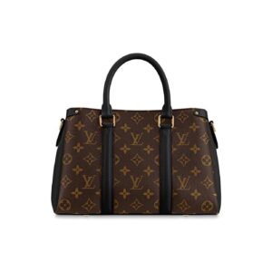 The fashionably petite Soufflot BB is crafted from supple Monogram canvas, with gussets and trim of rich, colored leather and a coordinating colored lining. With its vertical bands and name tag, it nods to the Keepall, a House icon. Refined and timeless, it can be carried cross-body, on the shoulder, by hand, or in the crook of the arm.