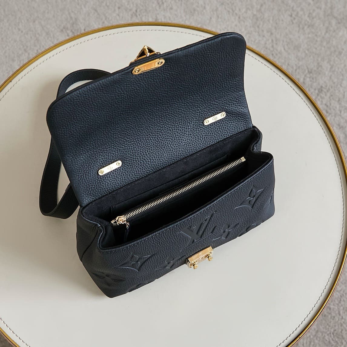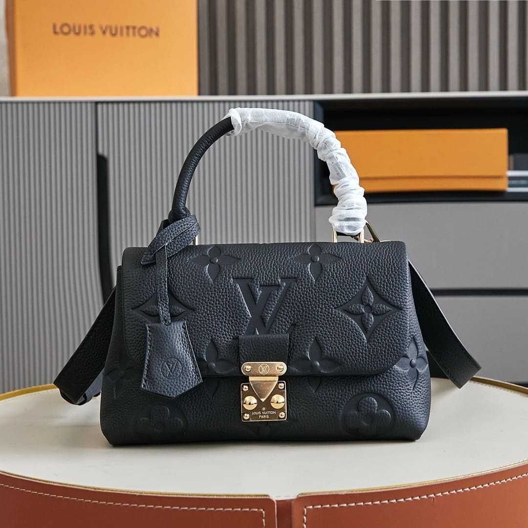 Made from Monogram Empreinte leather, with an oversized Monogram pattern embossed into the leather, this Madeleine BB handbag is a study in elegance. The single, articulated top handle brings a feminine elegance to the bag while the detachable strap enables shoulder and cross-body carry. It’s signed with the House’s classic key bell and S-lock.