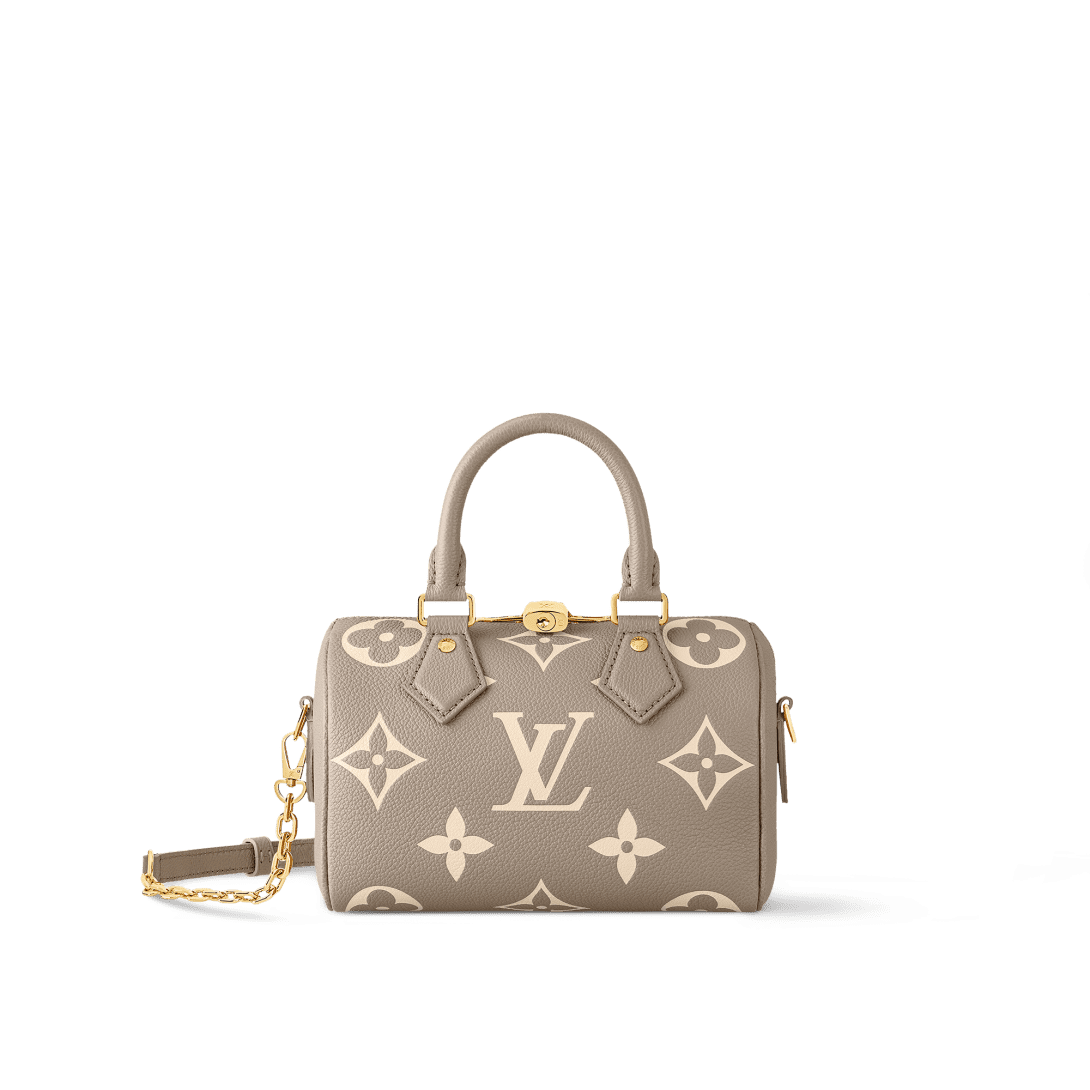 Made from two-tone Monogram Empreinte leather with the LVs and Monogram Flowers in a cream colour, the Speedy Bandoulière 20 bag is a modern classic. Inspired by the House’s Speedy luggage line introduced in the 1930s, it features the same shape and articulated top handles. A chain-and-leather strap enable shoulder and cross-body wear.