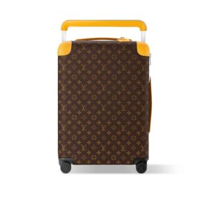 This Horizon 55 rolling hardcase is made from Monogram Macassar canvas with leather trim in a lively color. The textile lining is in the same color as the exterior trim. This cabin-sized bag is remarkedly roomy thanks to its innovative design: the cane is positioned on the exterior to maximize internal space.