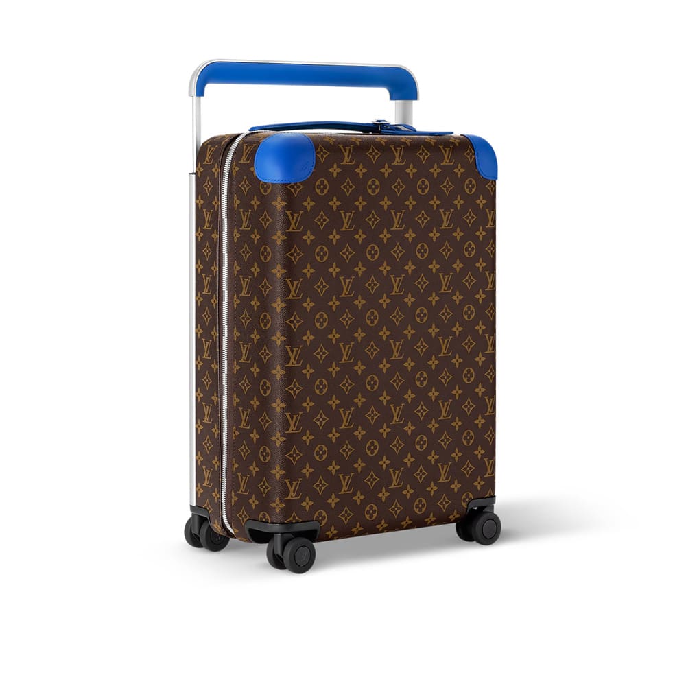 The perfect combination of tradition and modernity, the Horizon 55 rolling suitcase is made from iconic Monogram Macassar canvas with bright-colored leather trim, including on the reinforced corners and top handle. The bag’s unexpectedly spacious interior is lined in matching-colored textile. This case can be used as carry-on baggage.
