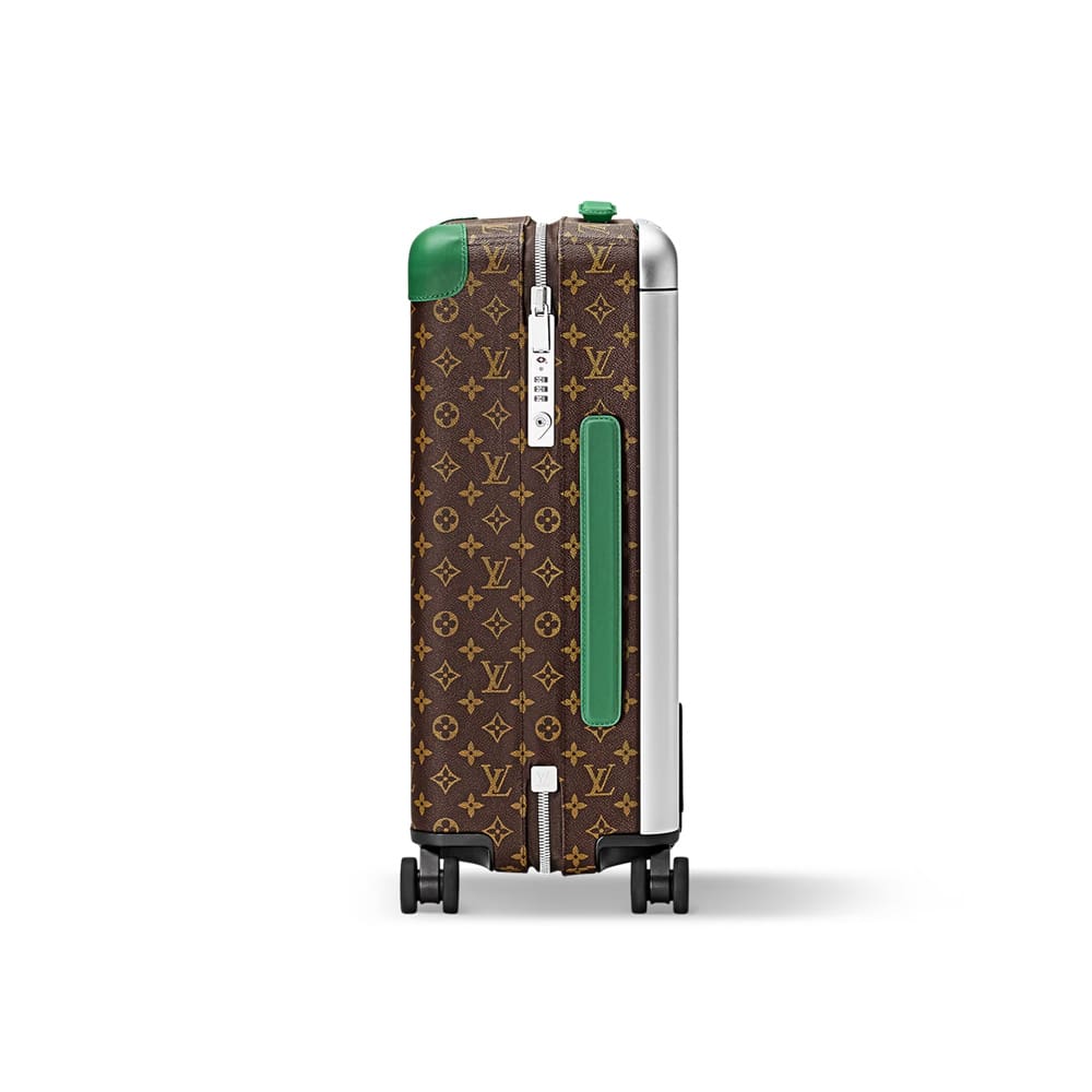 The perfect combination of tradition and modernity, the Horizon 55 rolling suitcase is made from iconic Monogram Macassar canvas with bright-colored leather trim, including on the reinforced corners and top handle. The bag’s unexpectedly spacious interior is lined in matching-colored textile. This case can be used as carry-on baggage.
