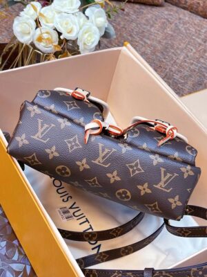 Made from Monogram canvas with leather trim, the super-cute, super-functional Excursion PM backpack has a design clearly influenced by the world of hiking. The main compartment closes with an adjustable sliding buckle and there are two pockets with buckles on the front. A gold-color chain, in addition to the top handle, enable different carries.